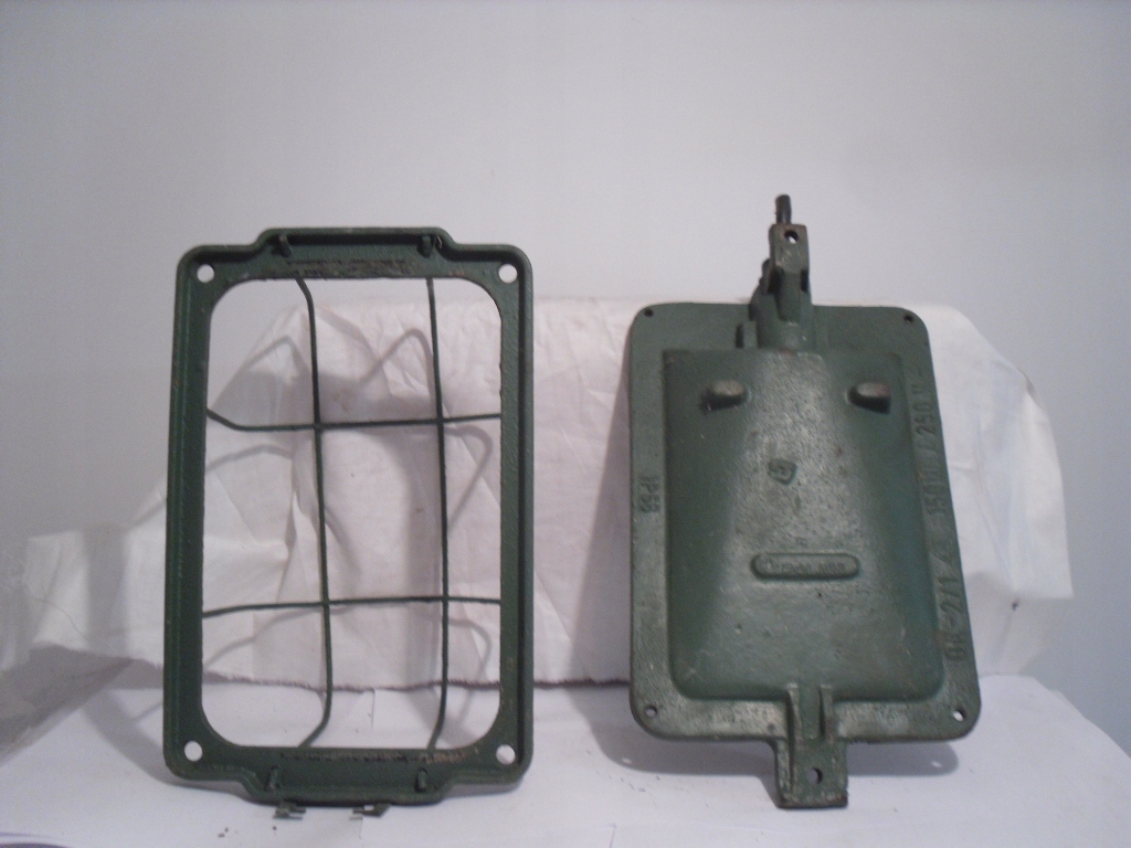 Ласкаво просимо на мій аукціон. На аукціонах я зазвичай пропоную вам речі періоду Польської Народної Республіки. На цьому аукціоні я пропоную ОРИГІНАЛЬНУ стару майстерню або лампу, яку часто знаходять у підвалах та на робочих місцях. Біло-зелена лампа в місці кріплення лампочки. Керамічний патрон лампи несправний, але він цілий і все ще має деяку проводку. Всі кріплення цілі, всі чавунні елементи і сітчасте покриття також неушкоджені. БЕЗ абажура чи гвинтів. /див. фото/ Лампа була очищена і не проходила ніякого обслуговування. Дивіться фотографії.