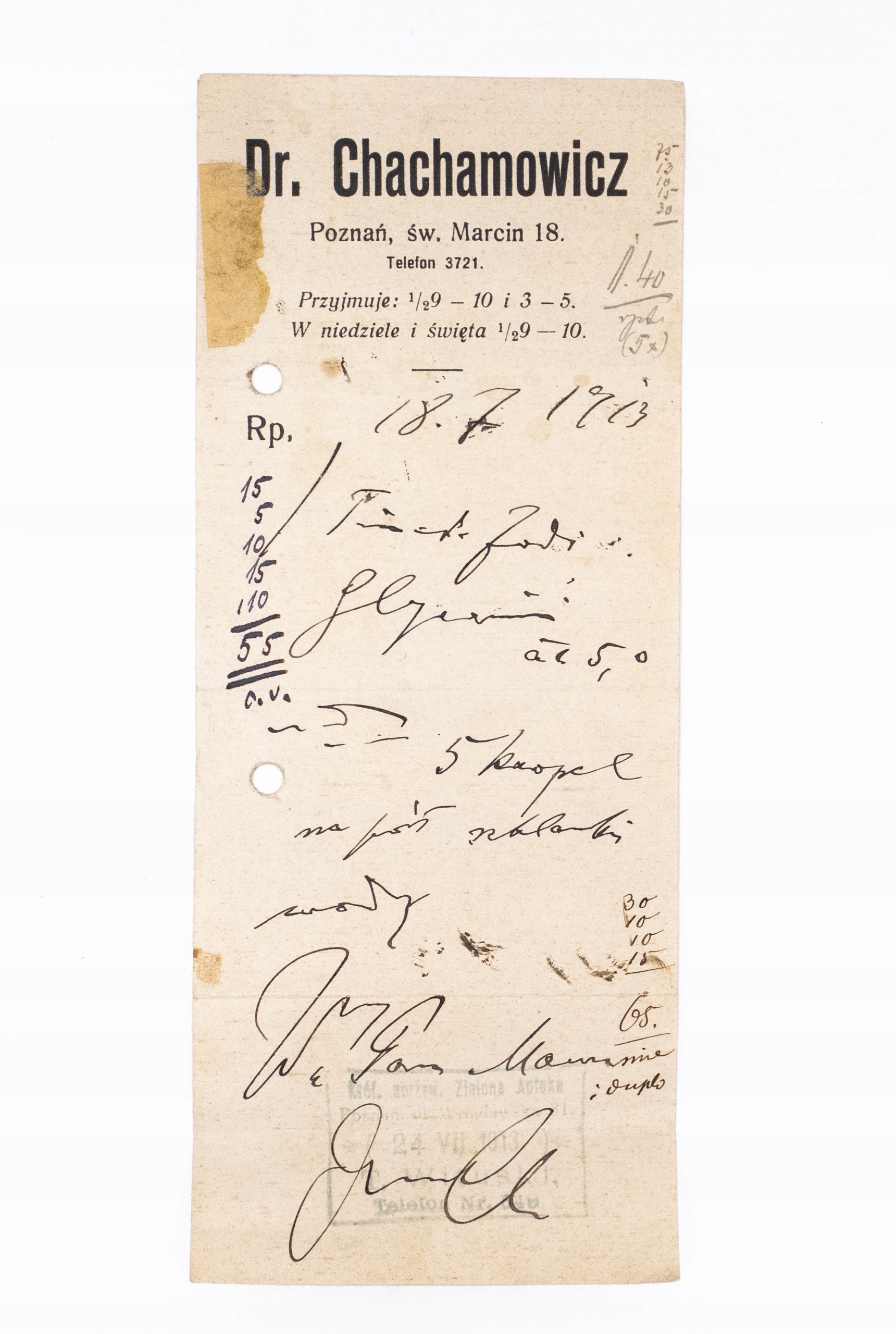 Старий рецепт, д -р. Chachamowicz, Green Pharmacy T. Witulski, Poznań 1913