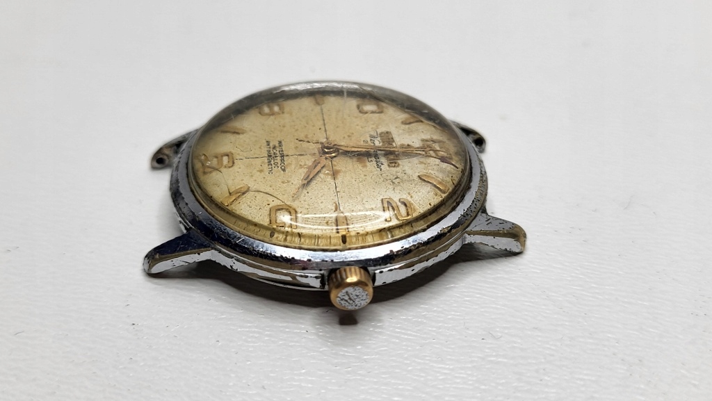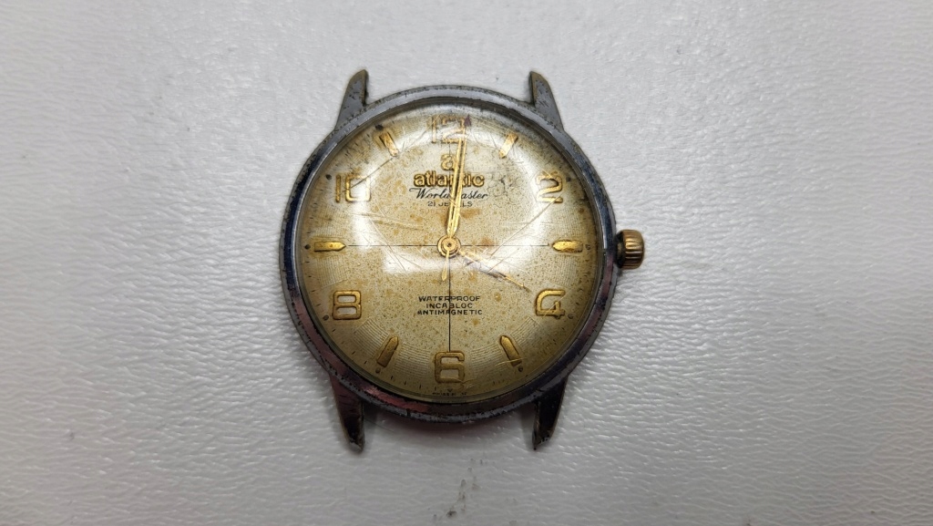 Я маю продати старий годинник годинника Atlantic Worldmaster 21 Jewels , як на знімках конверта демонструє ознаки використання у формі бруду та подряпин, ціла склянку має подряпини, у Shield є подряпини та бруд, маркування не носять, Ефективні, стан та повноту можна побачити на фотографіях.