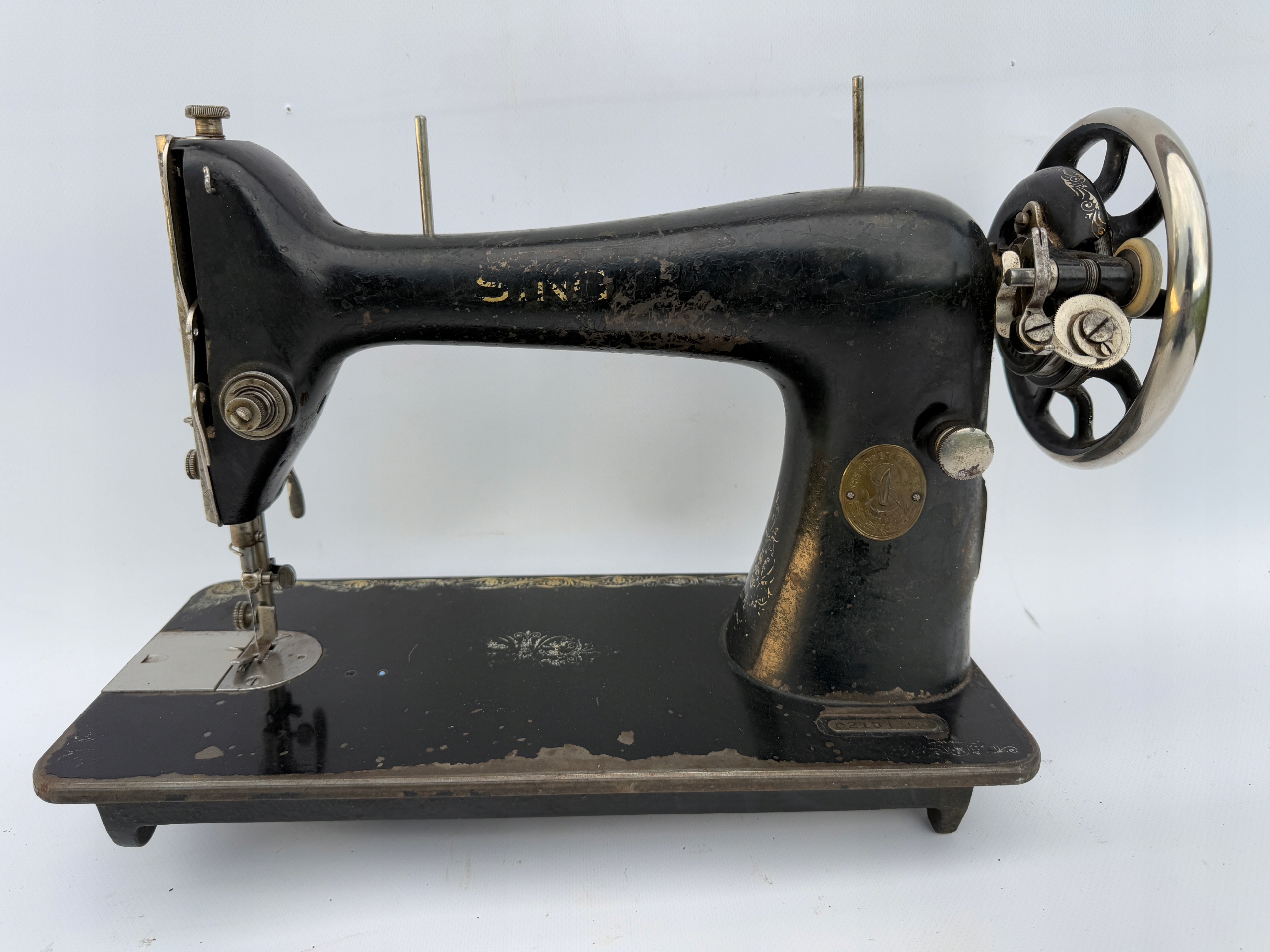 Тема продажу - це стара насосна машина для Swiking Singer. Цікава модель завдяки рідкісному типу барабана. Серійний номер вказує на виробництво близько 1908 р. Яка торгова марка. Простий доступ до механізму після відкручення одного гвинта в спину. Машина виглядає ефективно - колесо обертається, механізм працює. Оригінальні насоси також вижили. Якщо ви шукаєте щось оригінальне, аукціон призначений для вас.