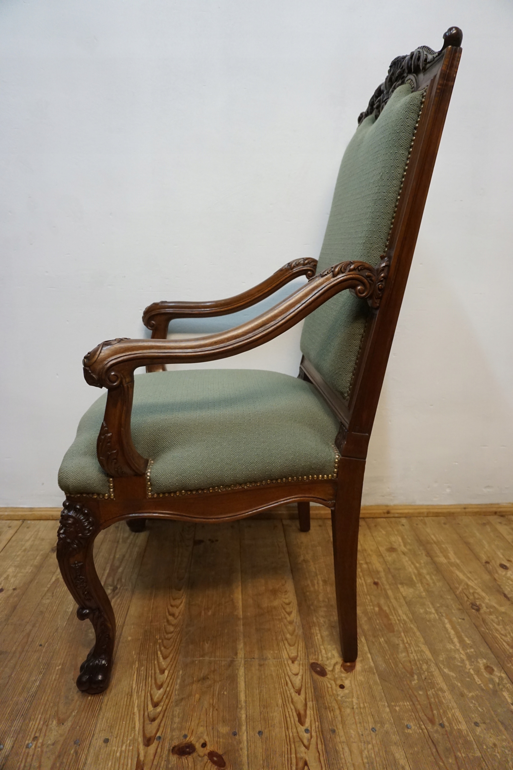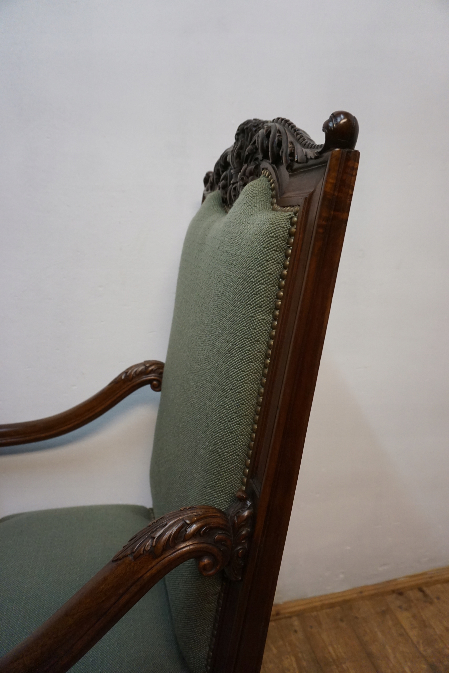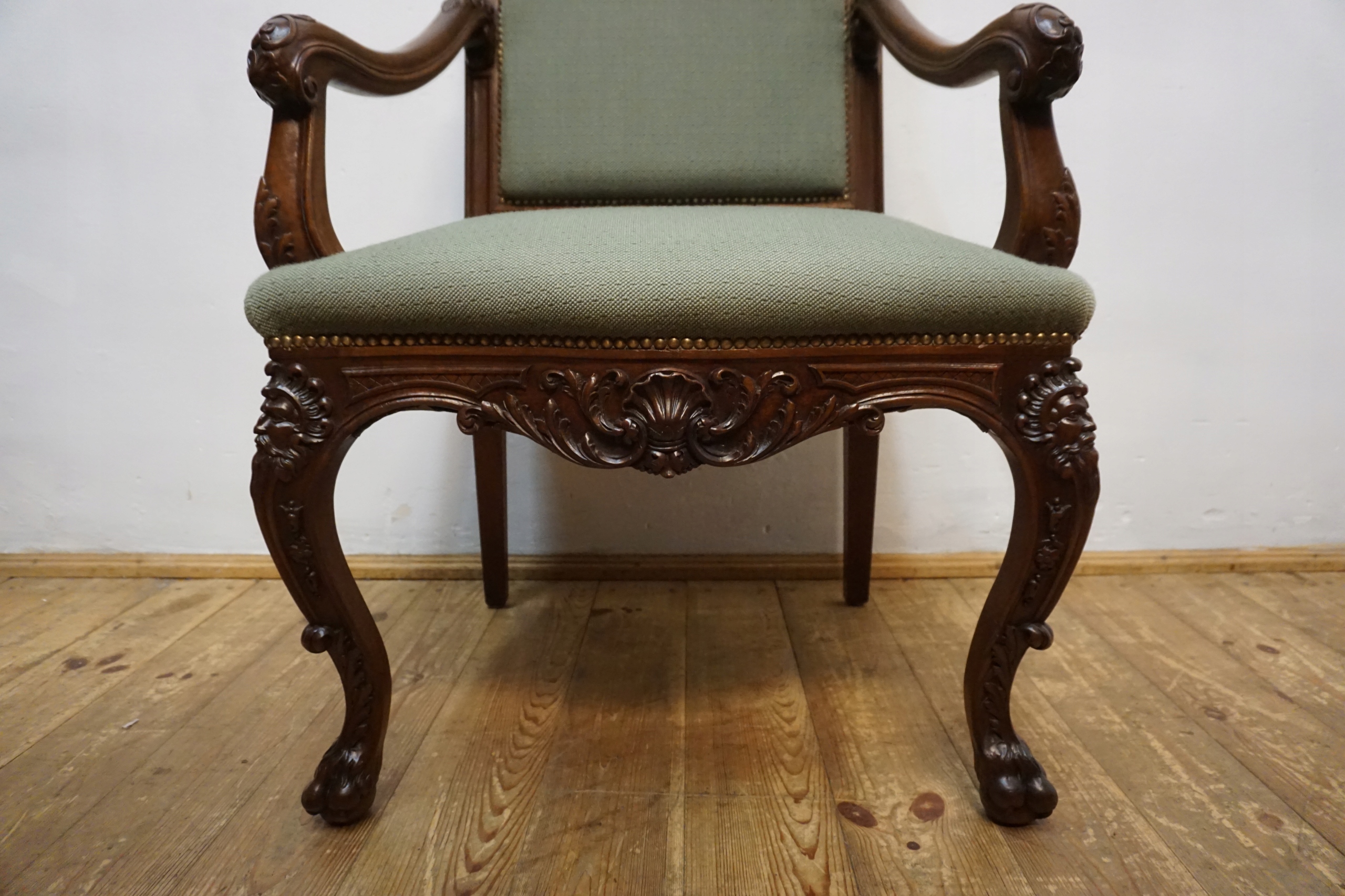 СТАРИЙ СТІЛЕЦЬ НА ПІЦІ З РІЗЬБЛЕННЯМ ГОЛОВ НА ЛАПАХ ЛЕВА, ПРУЖИНИ