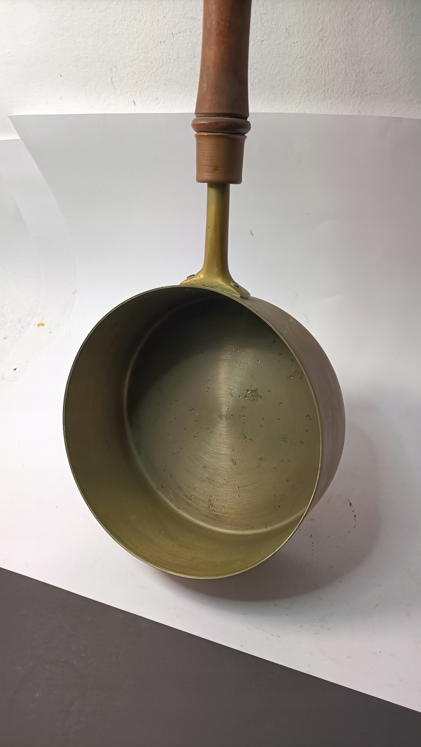 Гарна, стильна каструля з латуні всередині, оброблена міддю