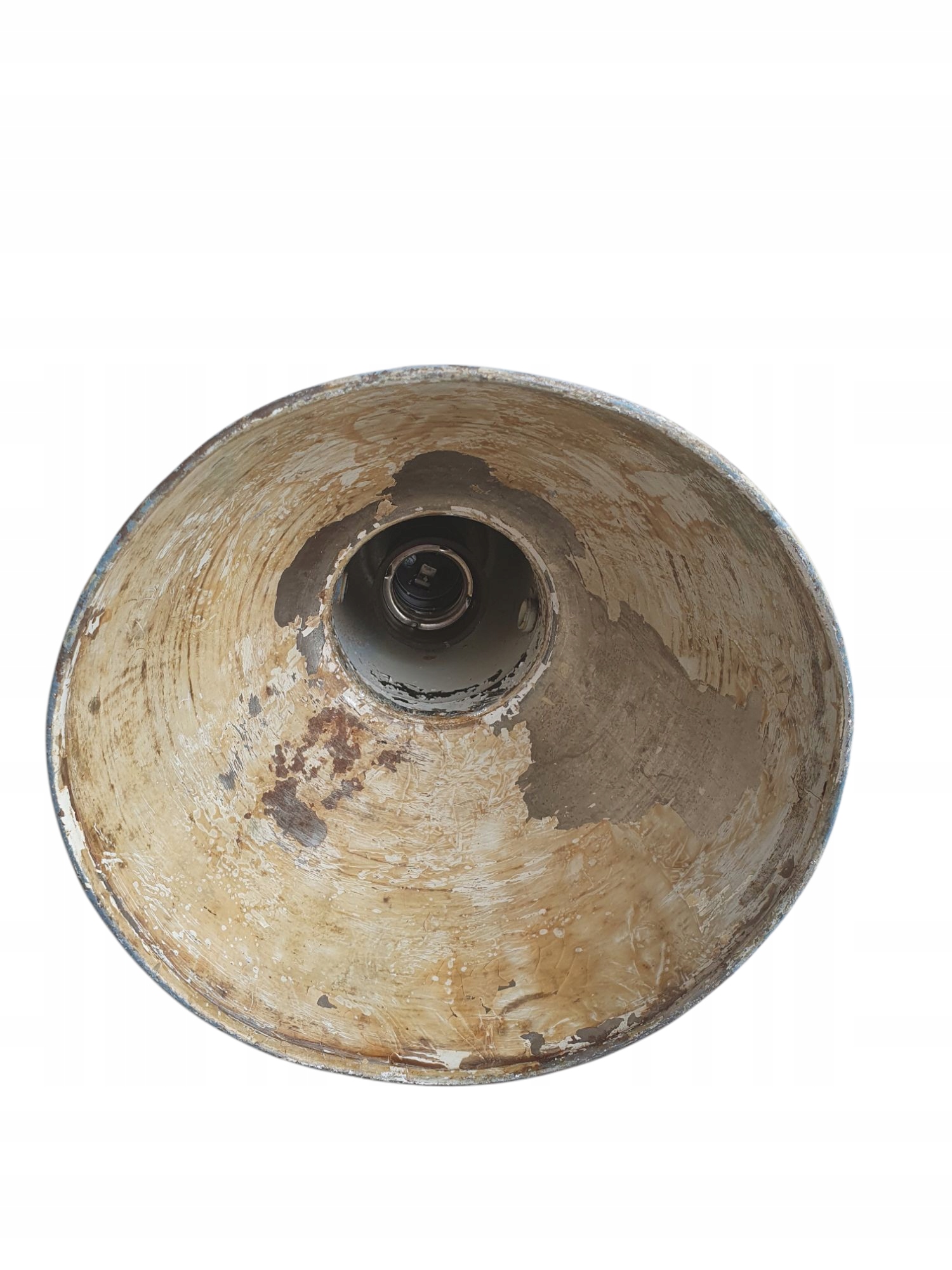 Продається унікальна, стара промислова лампа 1950-60-х років. 20 століття. Виготовлений з металу та покритий оригінальною коричневою емаллю, фрагменти якої видно з-під вторинного шару фарби. Цей тип світильників колись використовувався на промислових підприємствах, фабриках і в майстернях - сьогодні вони є затребуваним доповненням до лофт, ретро та промислових інтер'єрів.