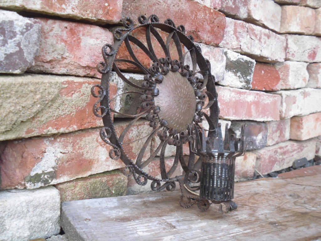 Ласкаво просимо на мій аукціон. На аукціонах я зазвичай пропоную вам речі часів Польської Народної Республіки. На цьому аукціоні я пропоную ОРИГІНАЛЬНУ настінну лампу, яка виглядає як робота ручної роботи. Настінний світильник повністю виготовлений з металу. Скрізь є невеликі сліди іржі, очищений та не обслуговувався. Розетка і шматок кабелю. Внутрішні пластини, розміщені на колі, у деяких місцях розпаяні, дивіться фотографії.