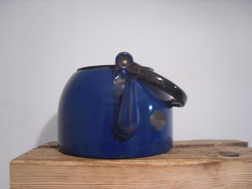 Ласкаво просимо на мій аукціон. На аукціонах я зазвичай пропоную вам речі періоду Польської Народної Республіки. На цьому аукціоні я пропоную ОРИГІНАЛЬНИЙ старий емальований великий чайник, чайник дуже гарного синього кольору, центр білий, з боків покритий каменем, а дно має іржаве та чорне покриття. На жаль чайник всередині потертий часом, але ззовні має одне більше та одне менше пошкодження/вм'ятину, дно почорніло з видимим проколом. Рухома ручка з чорними чіпсами. Чайник очищений, жодним чином не оброблявся, герметичний. Чайник має підпис /дивіться фото/.