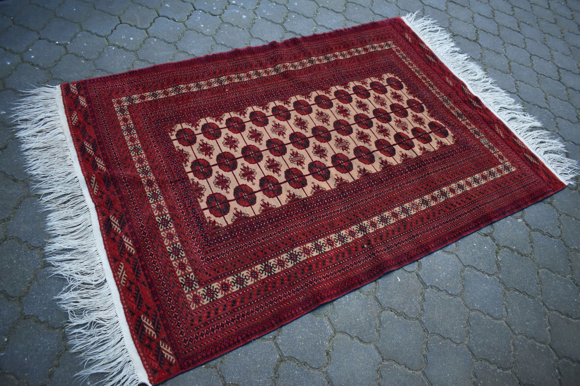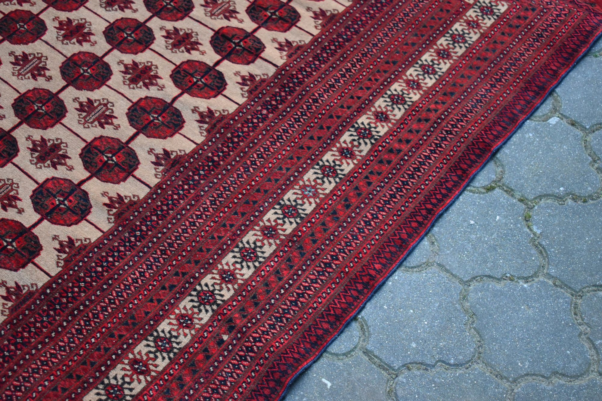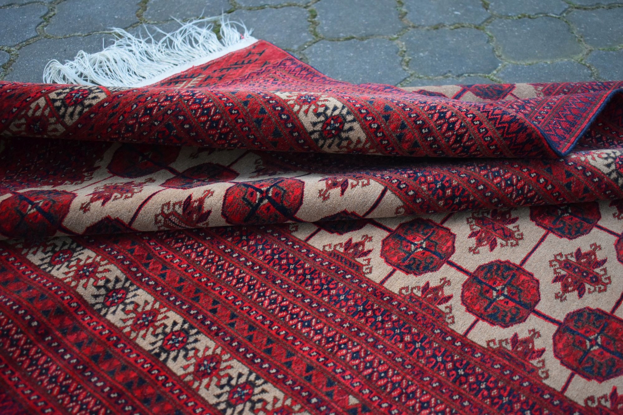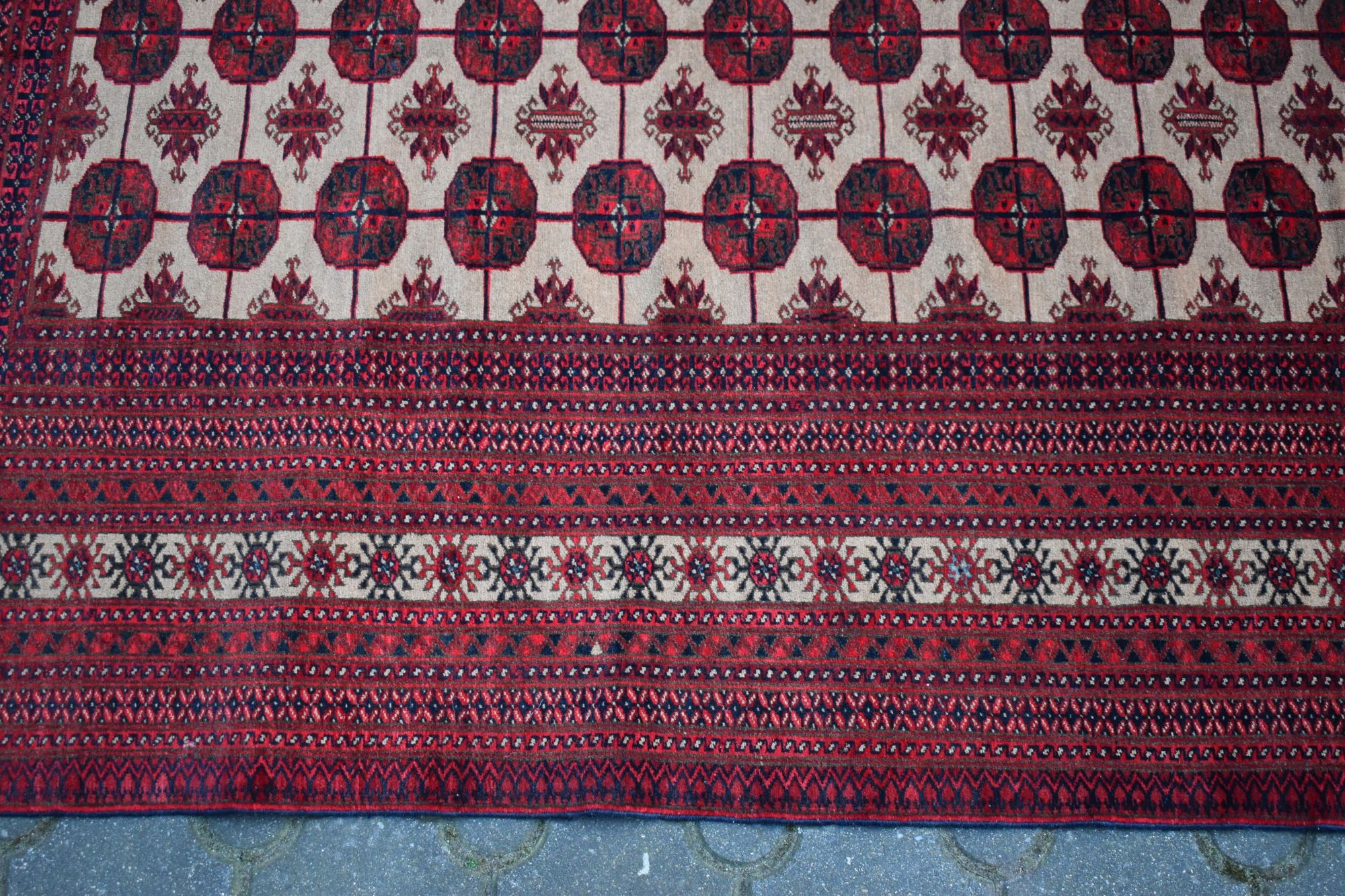 На наступному аукціоні я повинен запропонувати вам старі, виготовлені з найвищих видів вовни, хитромудро, рукоятка, оригінальний афганський килим! Килим із коротким вирізанням італійського - дуже стабільний. Характерний дизайн та цікаві кольори впливають на чарівність килима. Ідеальне доповнення до стильного інтер'єру! Має ремонт на одному банку. Для мого власного комфорту я рекомендую оновити.