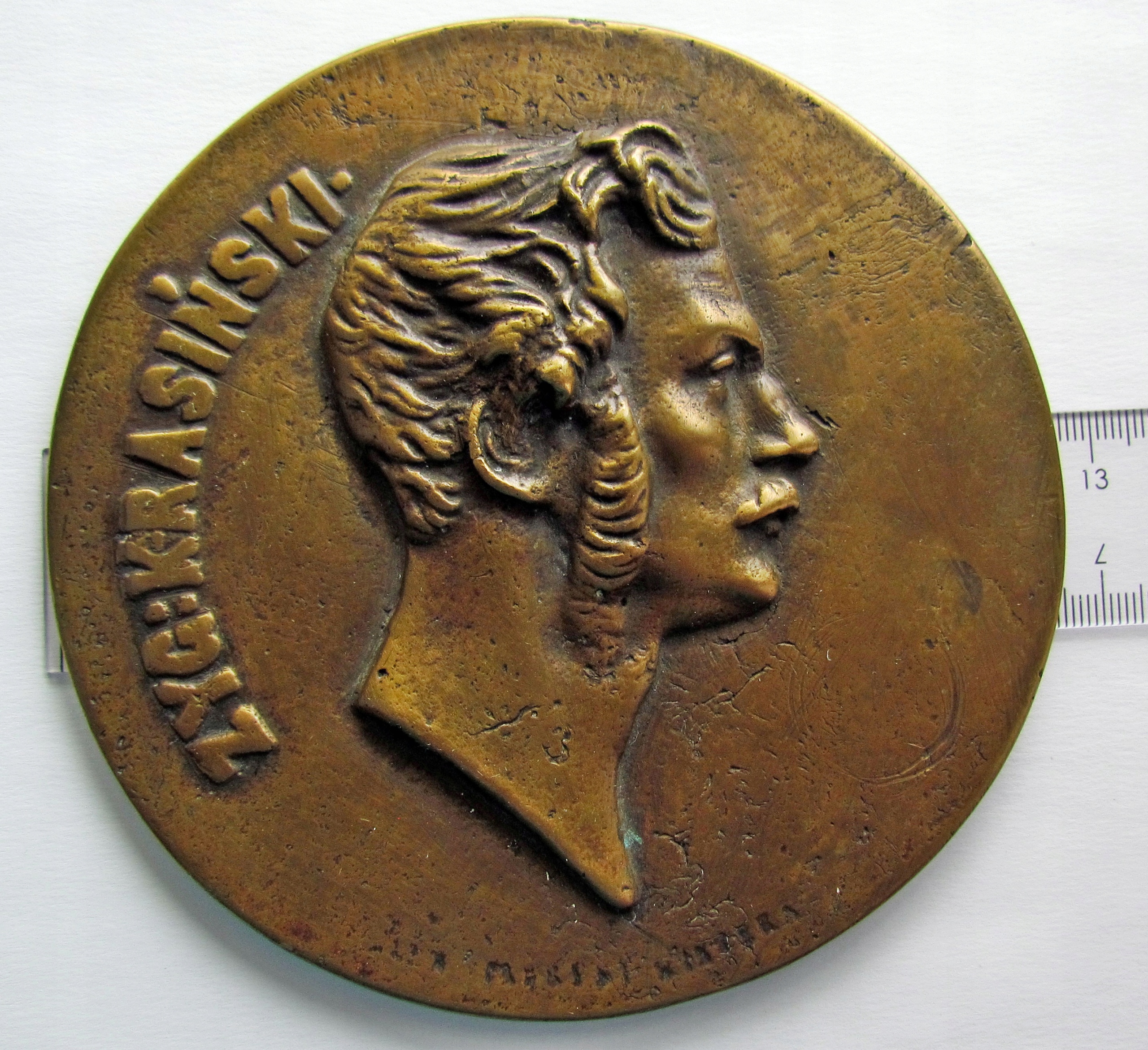 СТАРИЙ ЗНАЧОК,МЕДАЛЬ ЗИГМУНТ КРАСИНСЬКИЙ, ПІДПИСАНИЙ ЛИТТЯ МІНТЕРА-ЗАВОДУ