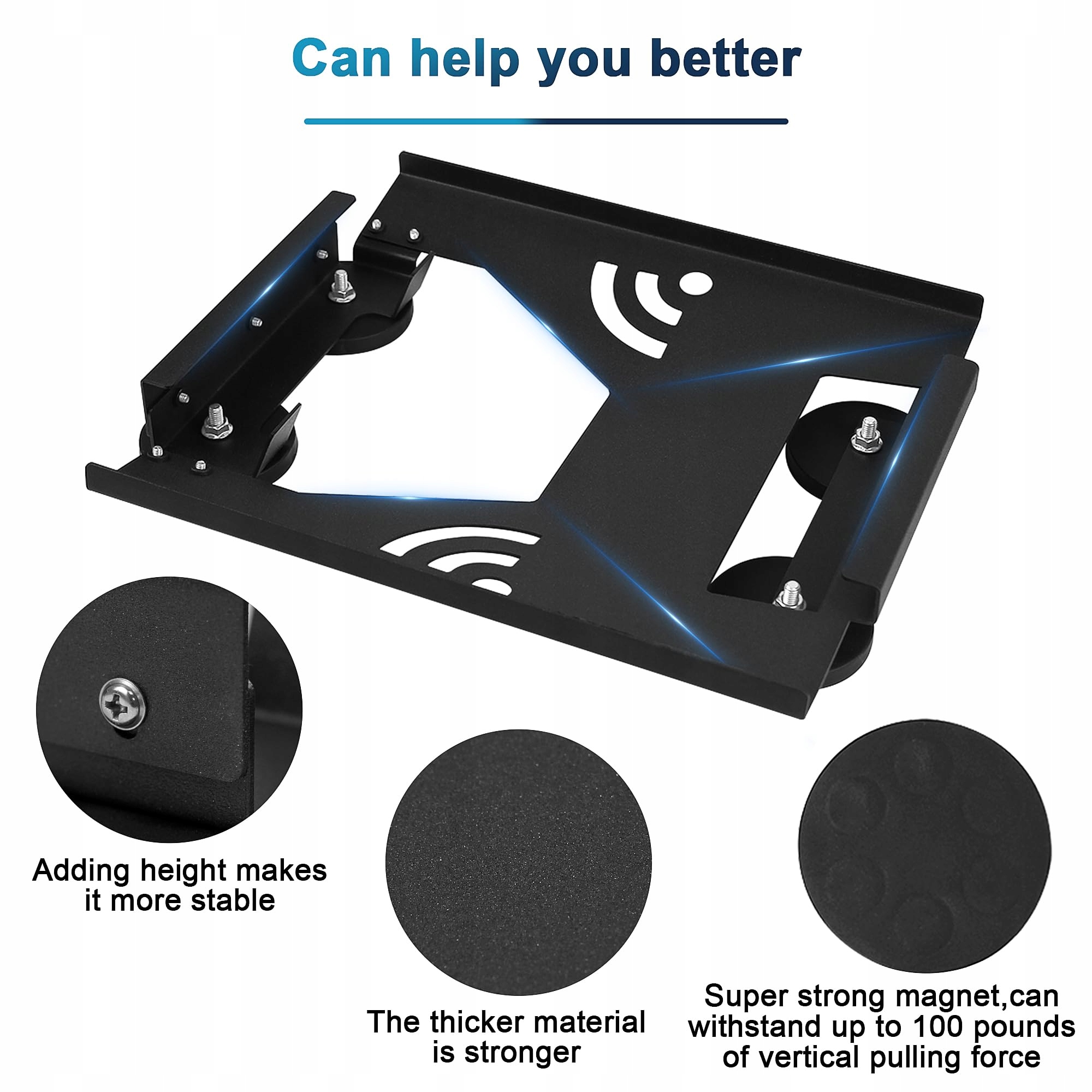 Оснащений сильними магнітами, здатними витримувати до 45 кг вертикального тягового зусилля, забезпечуючи надійне кріплення Starlink Mini до будь-якої сталевої поверхні.