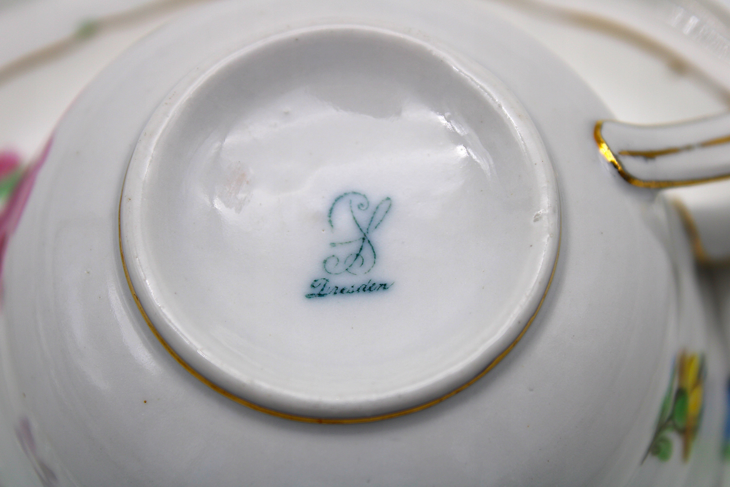 Я рекомендую старий антикварний кавовий набір - порцеляновий чай Carl Thieme в Potschappel/Dresden - Саксонічна рука -розфарбована в першій половині 20 століття **, наприклад, на скануванні, має лише природний тимчасовий абстрактор та невеликі натуральні фабрики