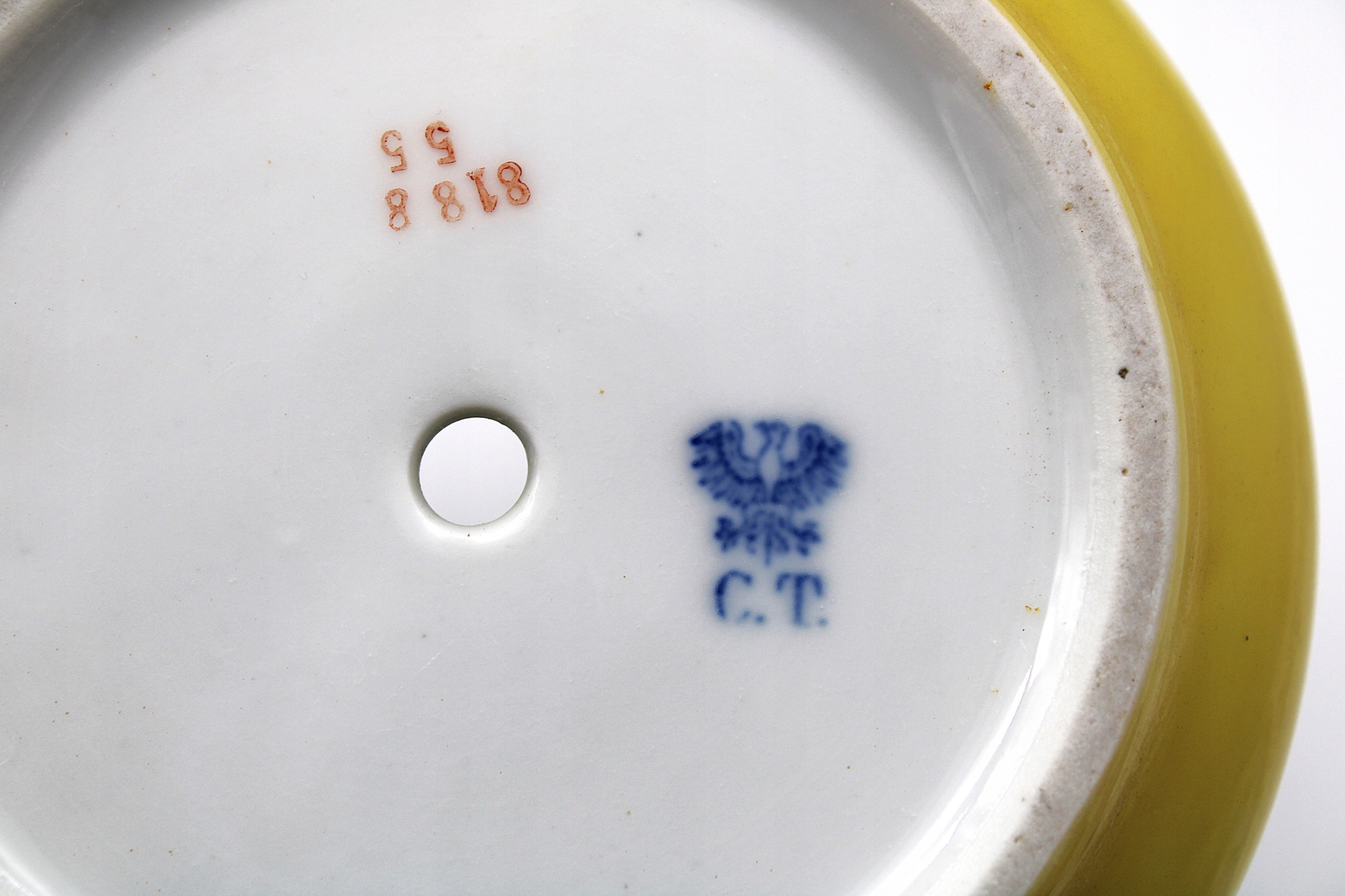 Я рекомендую стару стародавню обкладинку для квіткового горщика з порцелянової фабрики Carl Tielsch в Altwasser - STARE ZDROJ SILESIA, зробленому між 1875 - 1900 рр., Весь умовний стан, такий як на дуже хорошому скануванні, має лише природну тимчасову абразиву