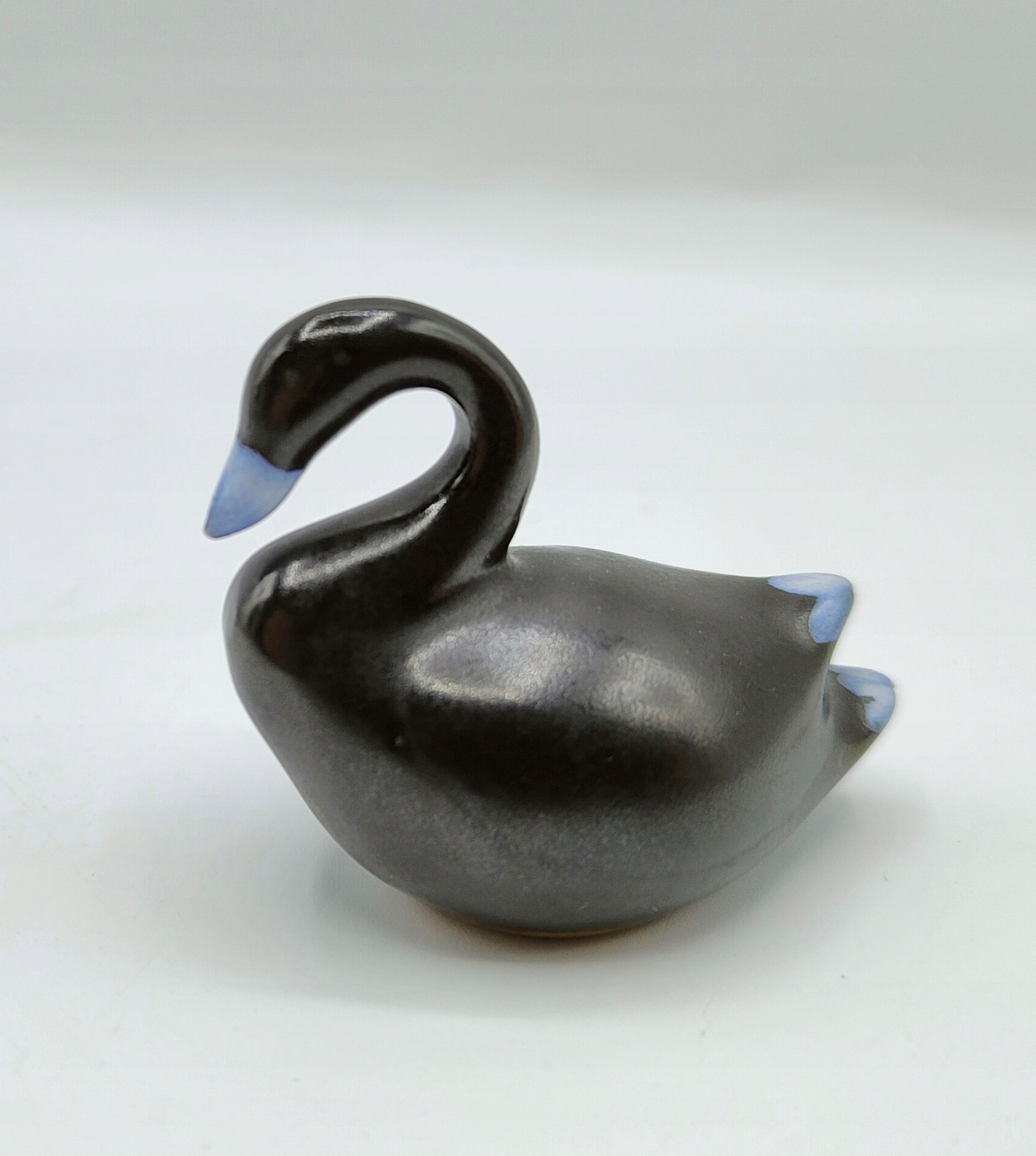 Античний керамічний глазурований ЧОРНИЙ крихітний лебідь, 4,7 см.