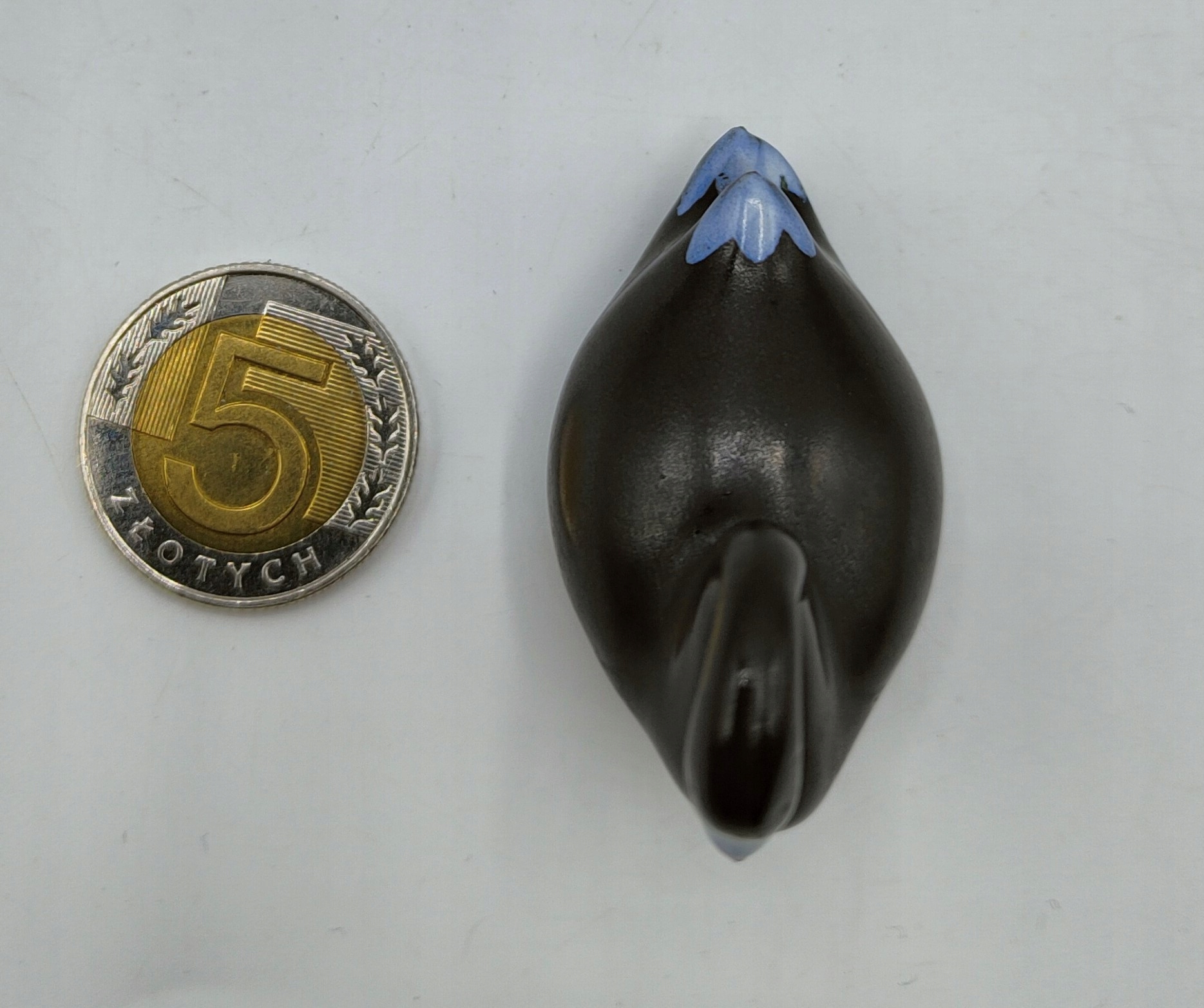 Starodawny szkliwiony CZARNY łabędź malutki 4,7cm