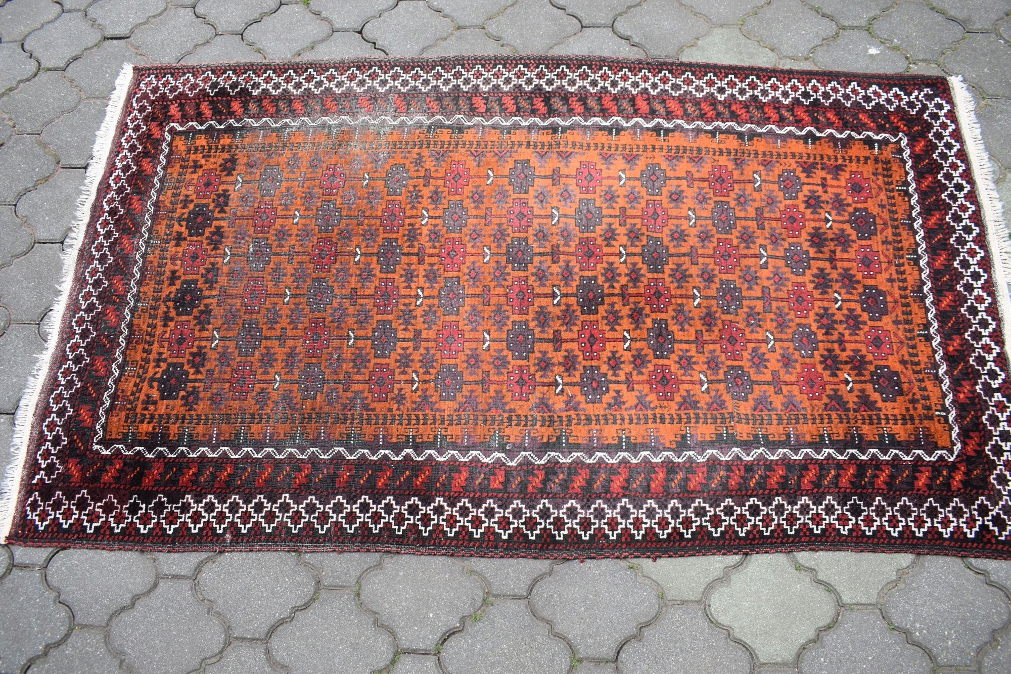 Стан: Килим в хорошому стані, враховуючи свій вік - вінтаж - немає дірки, дефекти, неприємні запахи. Має трохи пошкоджені бахроми.