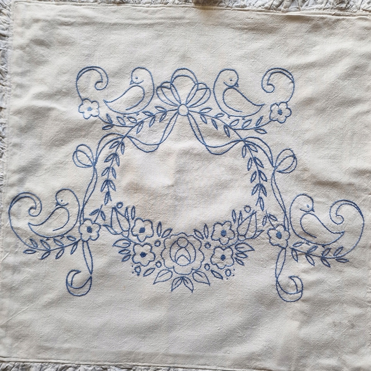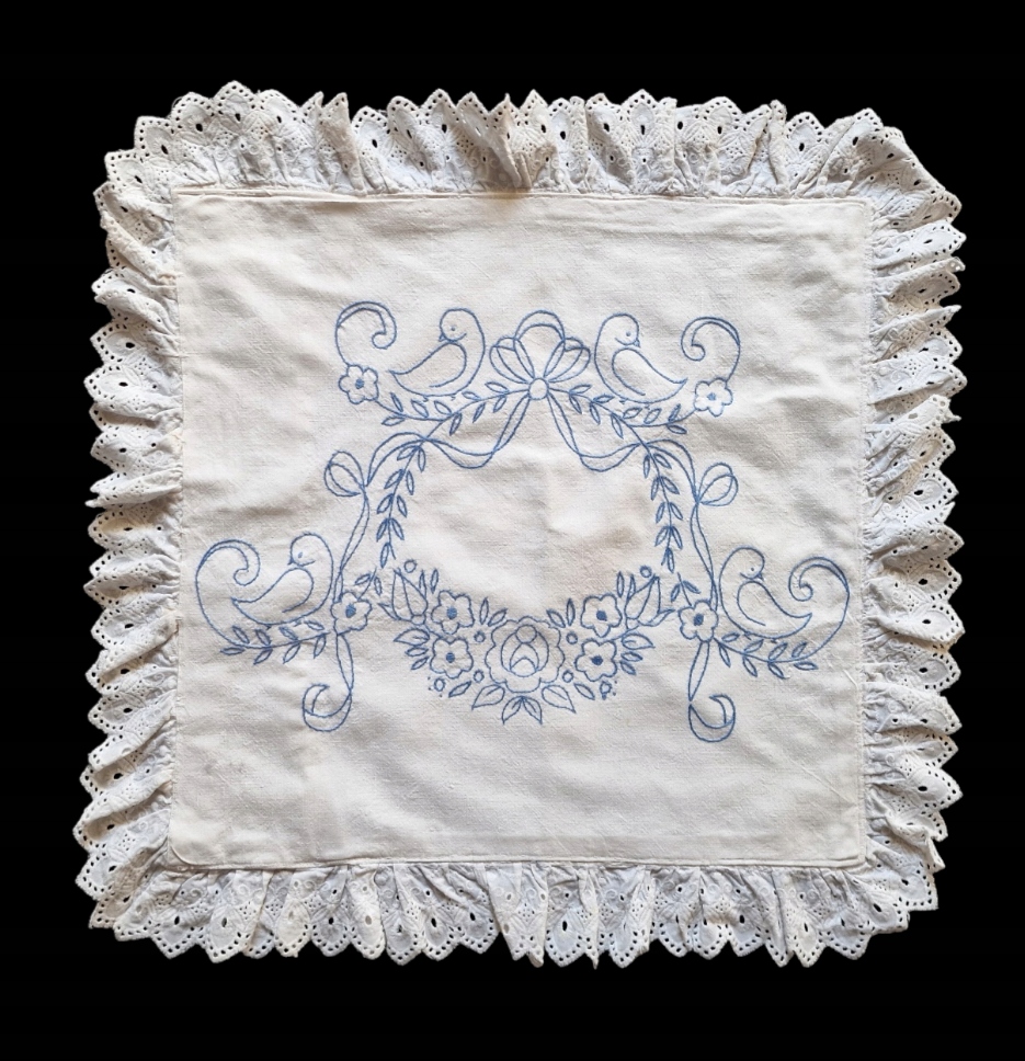 СТАРОВА ВИШИТА НАВОЛОЧКА З МЕРЕЖИВОМ