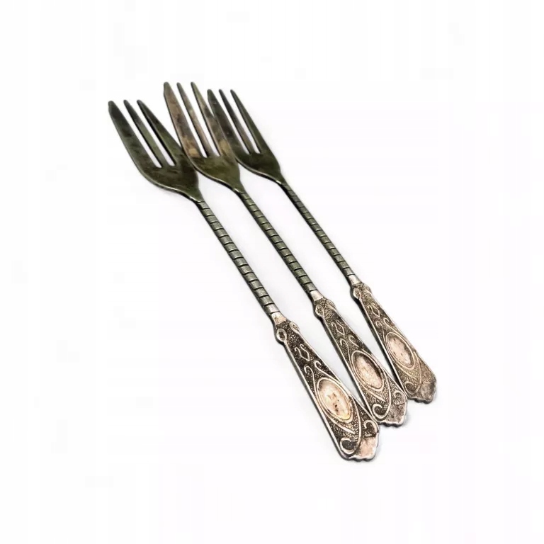 Античні: набір з 3 посріблених десертних столових приборів російського виробництва. Елегантний дизайн, багатий орнамент і легка патина підкреслюють вік і характер цих речей. Ідеально підходить для колекціонерів, любителів столових приборів з душею або як унікальне доповнення до посуду. Стан, що був у вживанні, збережено з чарівністю часу.