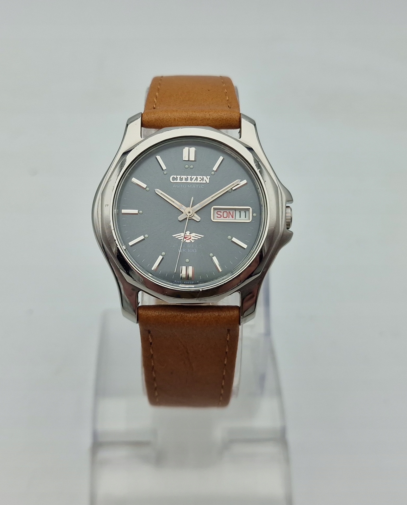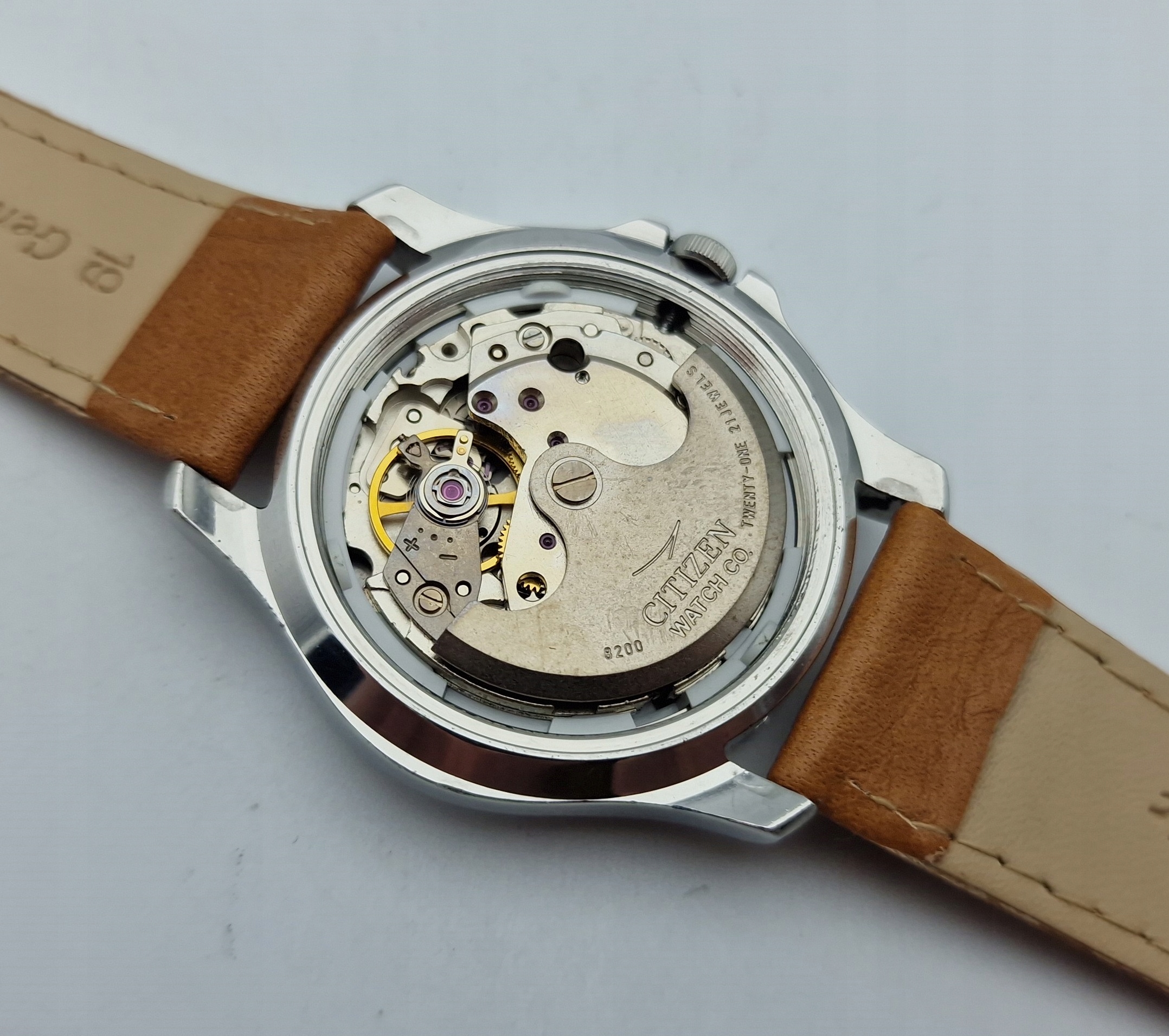- Механізм годинника з автоматичним заводом із 21 дорогоцінним каменем, якірний спуск. На механізмі вибиті такі підписи: «CITIZEN WATCH CO 8200, TWENTY One 21 JEWELS». Механізм у хорошому робочому стані після перевірки годинникарем.