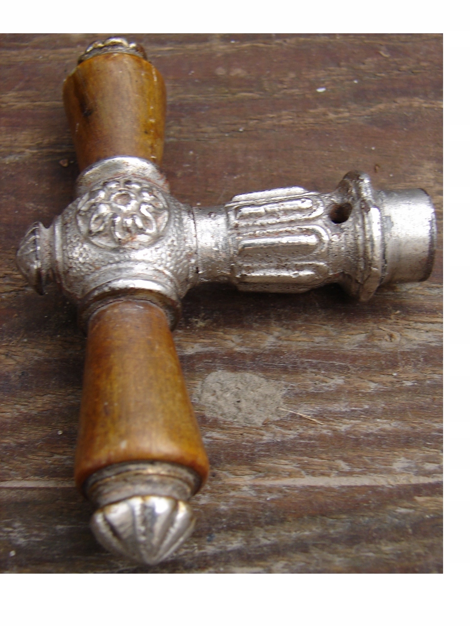 Старовинна німецька декоративна віконна ручка з металу та дерева.