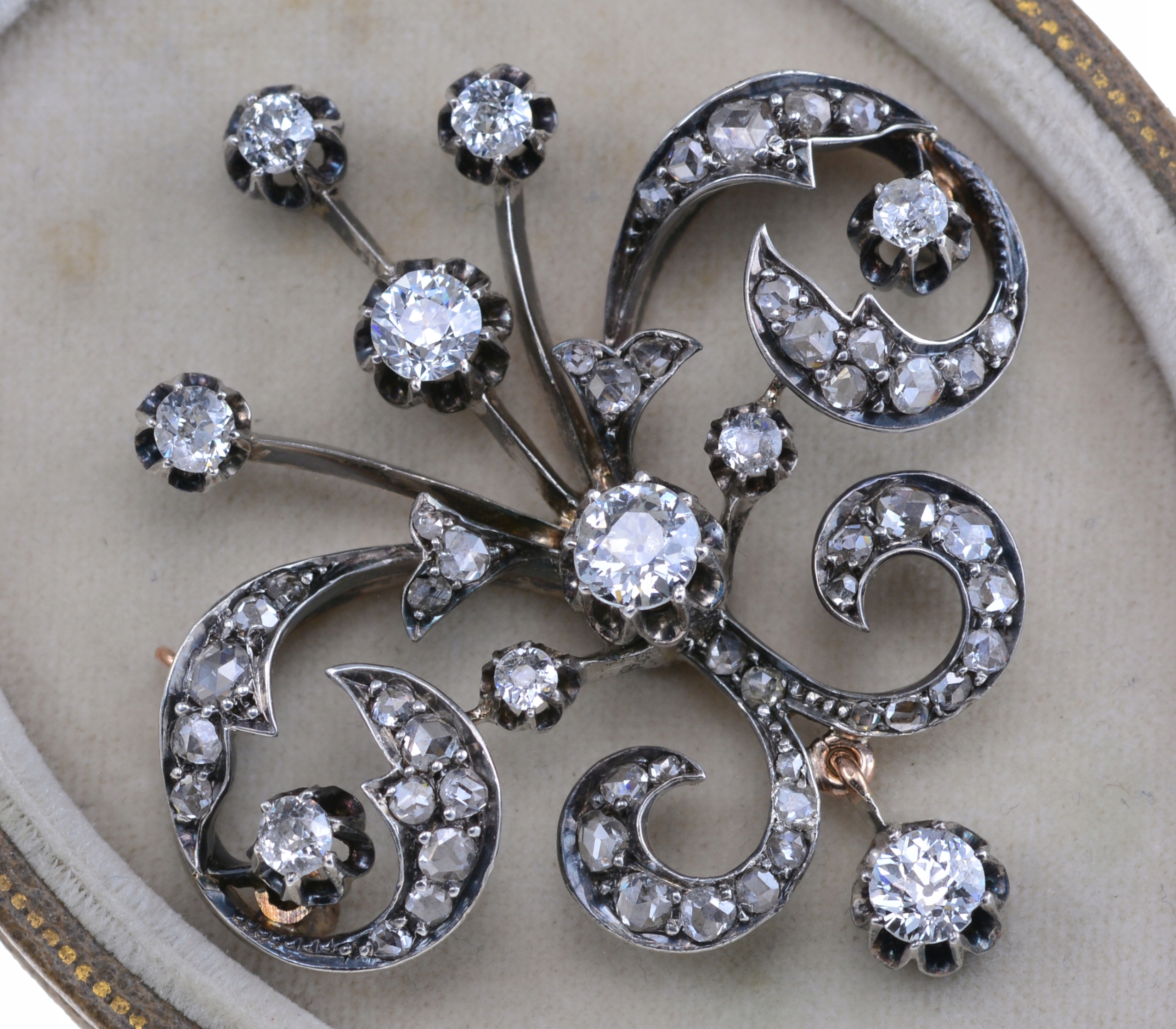 СТАРОВИННА ФРАНЦУЗЬКА БРОШКА З ДІАМАНТАМИ