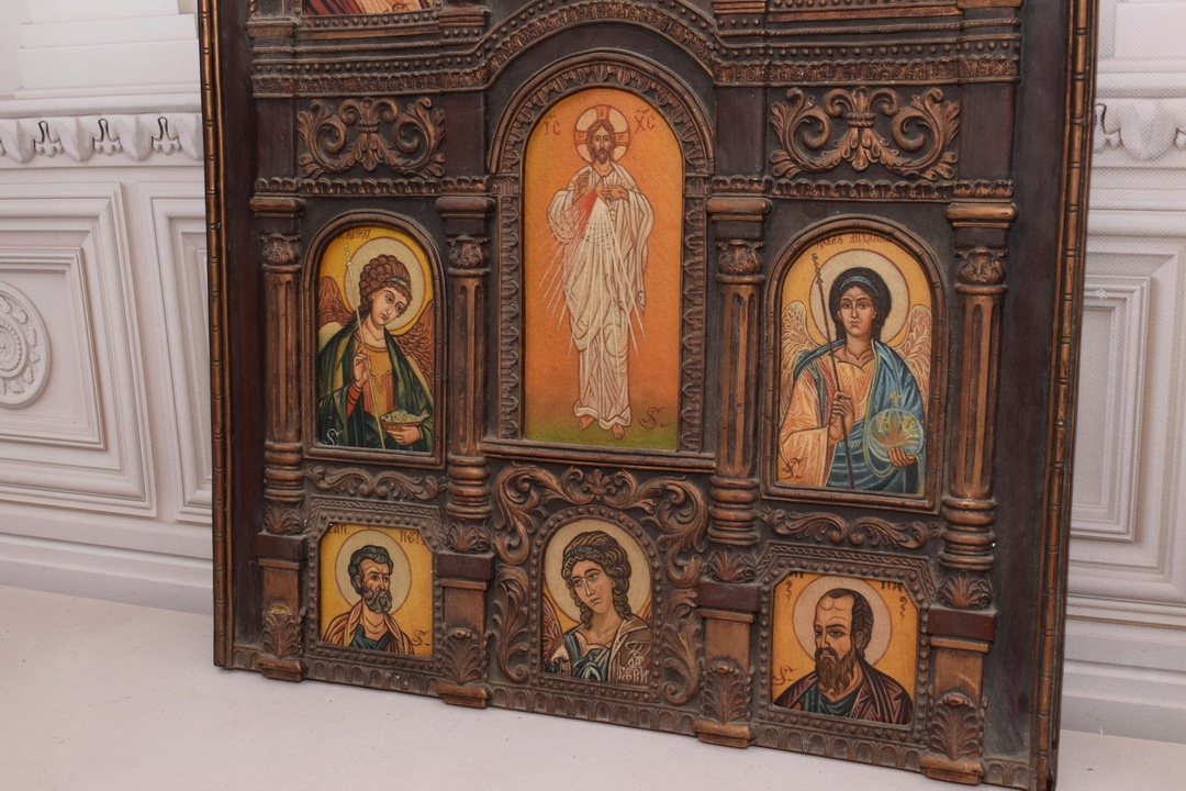 Старовинна ікона на дереві 9 образів в 1 - унікальна рамка для святого зображення