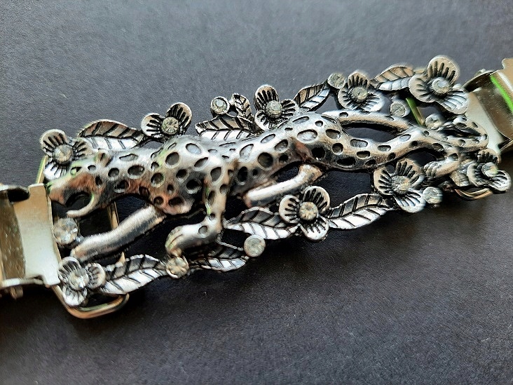 колоніальна пряжка, старовинна брошка. Кіт, леопард, прикрашений білими цирконами найвищої якості. Для сильної та незалежної жінки. Унікальний