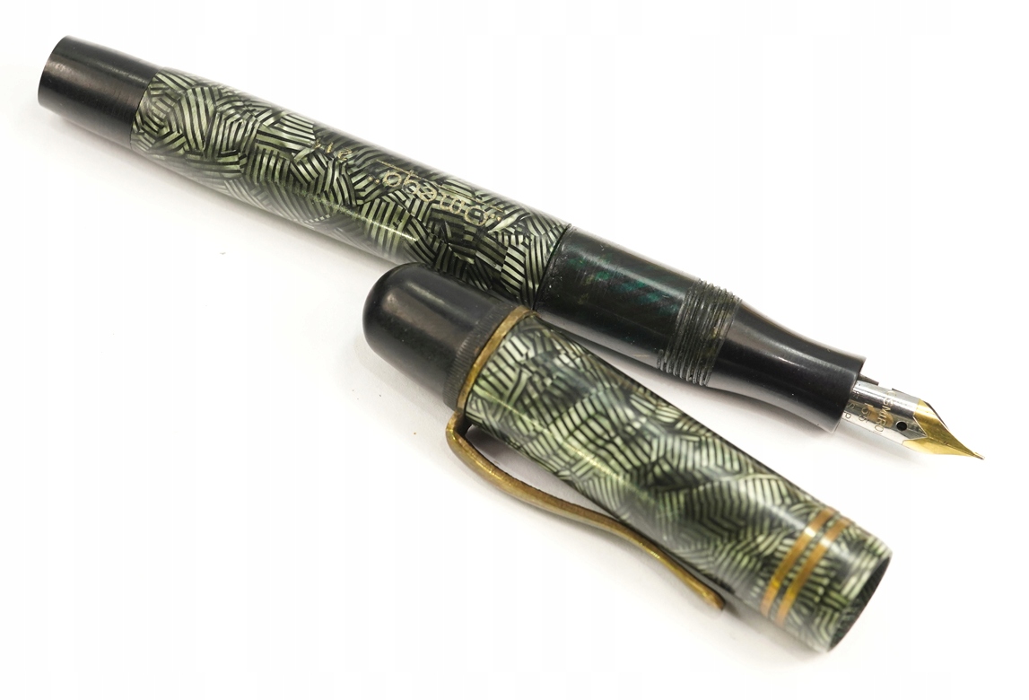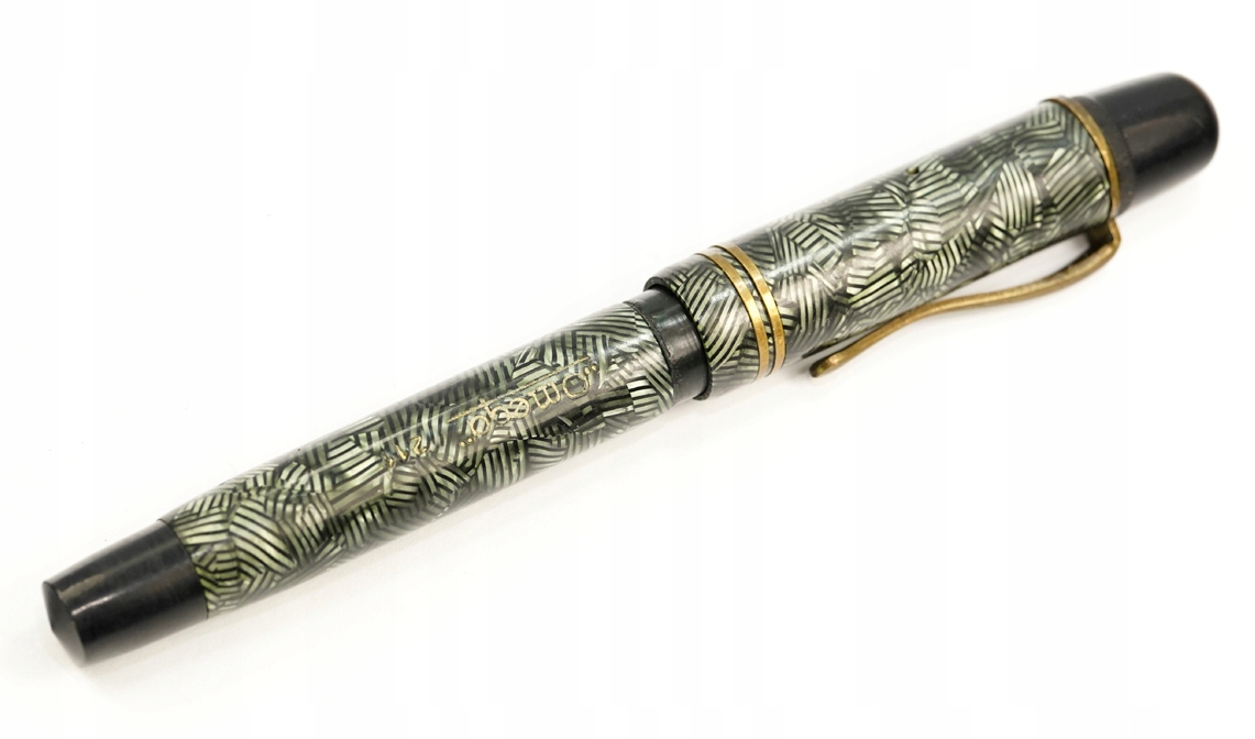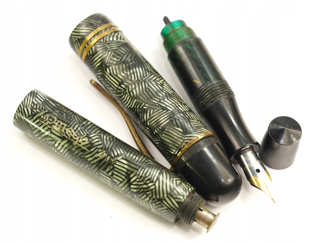 Оригінальна, дуже гарна довоєнна польська ручка, OMEGA 211, 1930-ті роки, оригінальне перо; ручка з підписом на бочці; розмір: загальна довжина 12,8 см, стан хороший. Ручка не розбиралася, на корпусі немає тріщин (перевіряв під лупою, маю фотодокументацію), різьбове з'єднання корпусу підпису з частиною з пером ослаблене - могло бути приклеєне спочатку. Ручка в дуже гарному стані. Рекомендую, оригінальна, рідкісна річ за доступною ціною. Надзвичайно цікавий рідкісний оригінальний предмет. Стан добре видно на фото в описі аукціону.