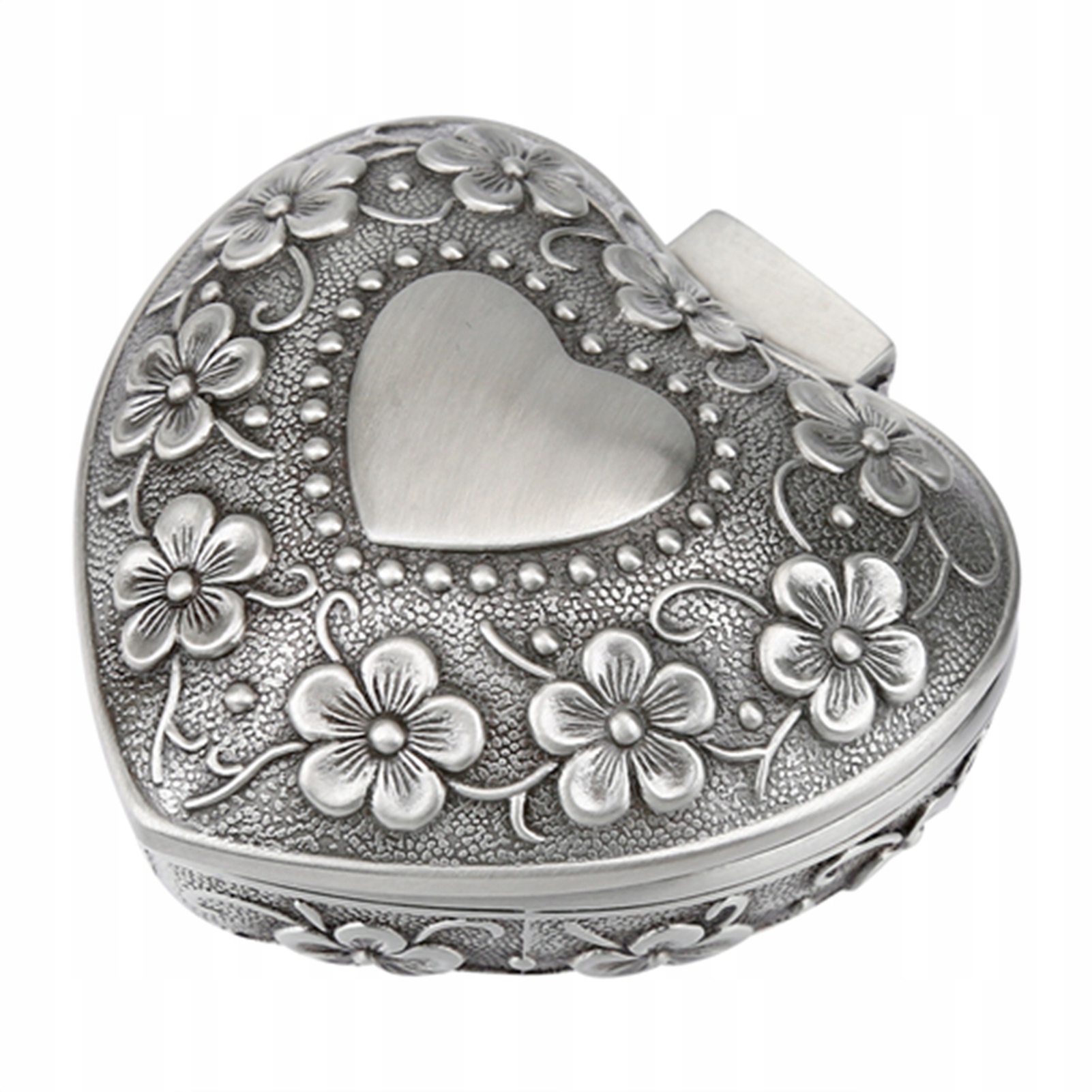Старовинна скринька у формі серця з різьбленою квіткою. Металевий дизайн
