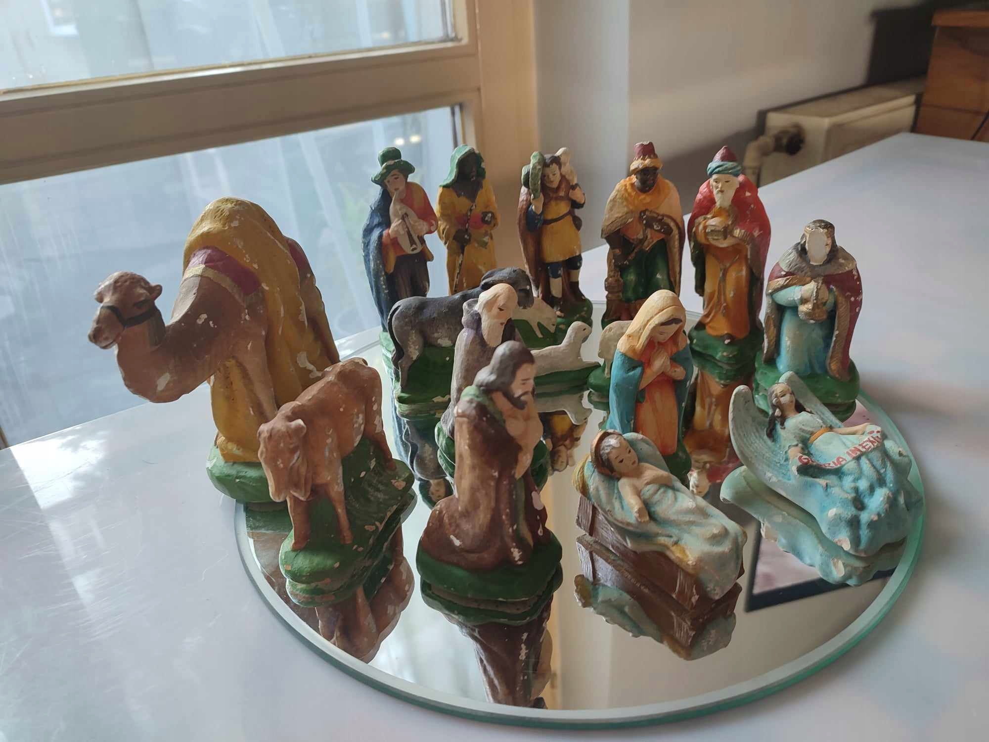 Старі гіпсові фігурки та янгол для ясел, вертеп, найвища фігурка 15см. фігурки пастухів і царів 14 см. ангел 10 см., на інших моїх аукціонах ви знайдете інші хрести, розп'яття, святі картини, картини, брелоки, абажури і все необхідне для ламп, світильників, люстр, настінних світильників, масляних ламп дивіться інші мої аукціони, у мене близько 5000 аукціонів, все як на фото