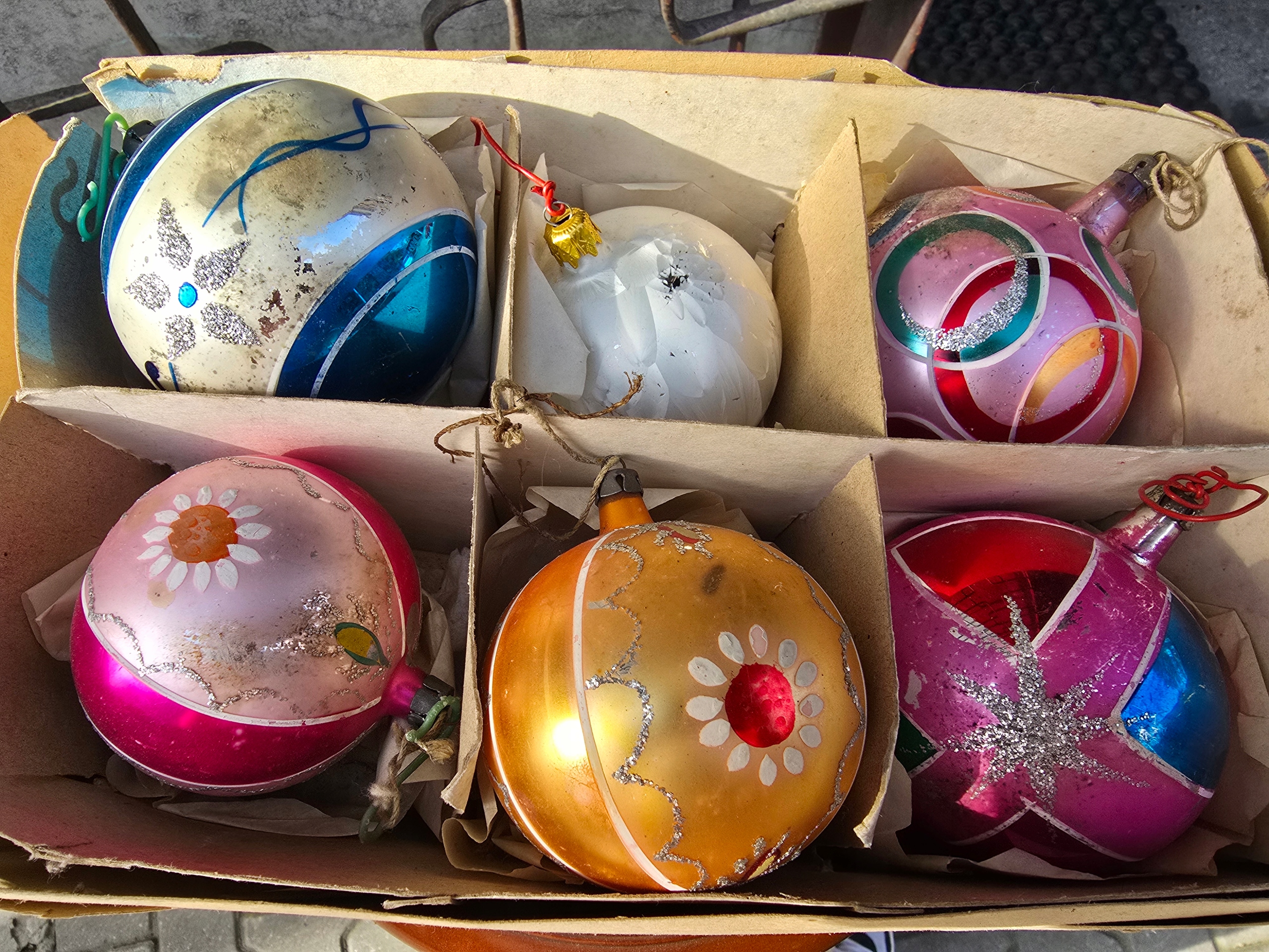Старовинні різдвяні кульки з Польської Народної Республіки, набір 5 шт