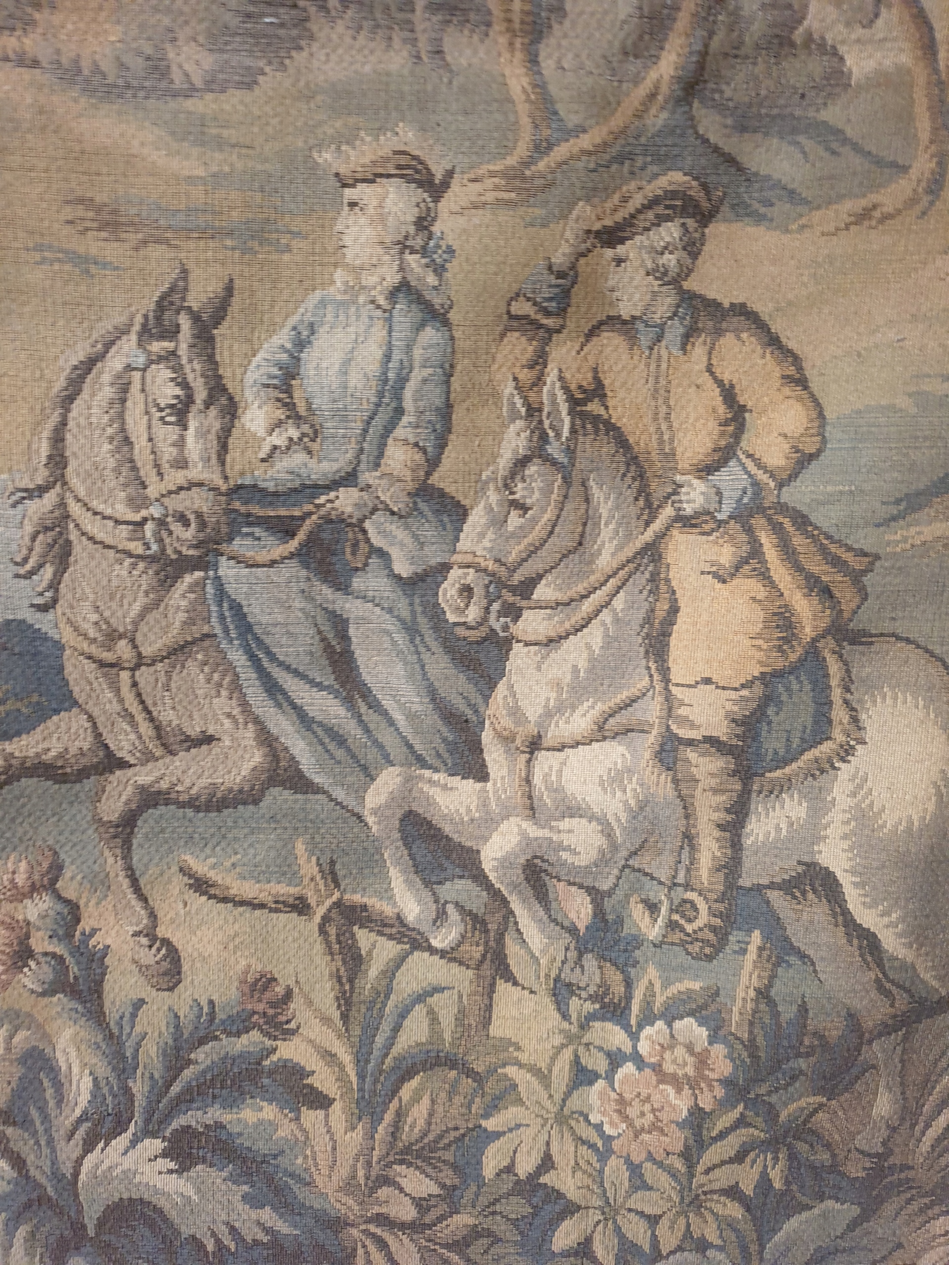 Старовинний французький гобелен із жанровою сценою на полюванні