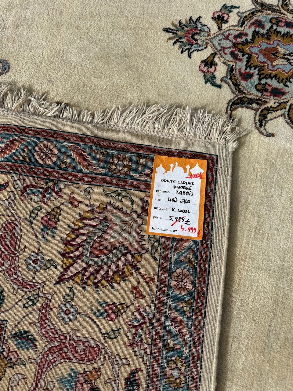 Старовинний кашеміровий перський килим, тканий Тебріз 400x300 галерея 25 000 зл.