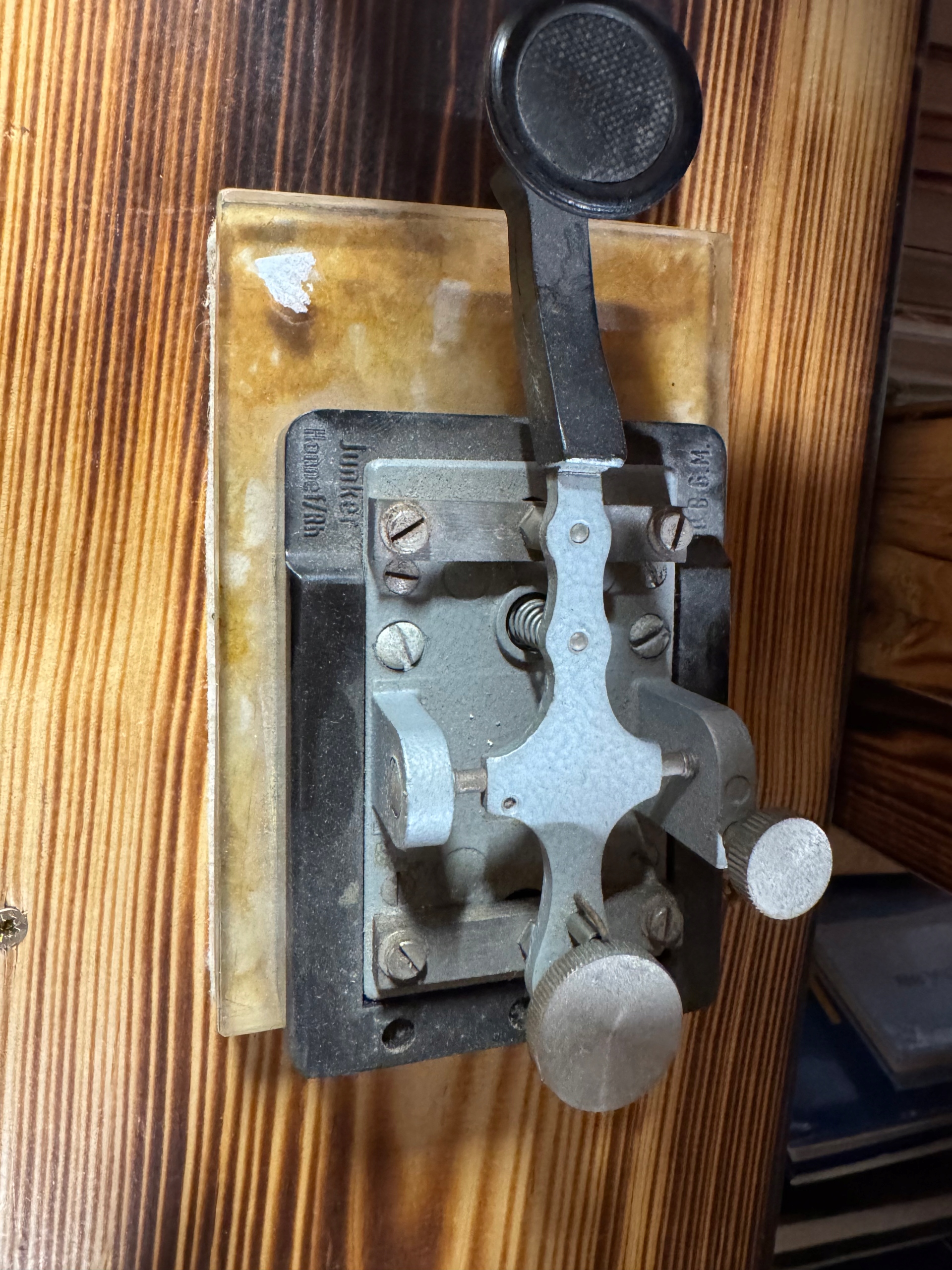 - Опис: Ключ телеграфа виробництва Junker від Honnef. Використовується для надсилання сигналів Морзе. Тверда конструкція з металевими елементами, встановлена на основі. Популярні в аматорських та професійних додатках у радіомовному спілкуванні.