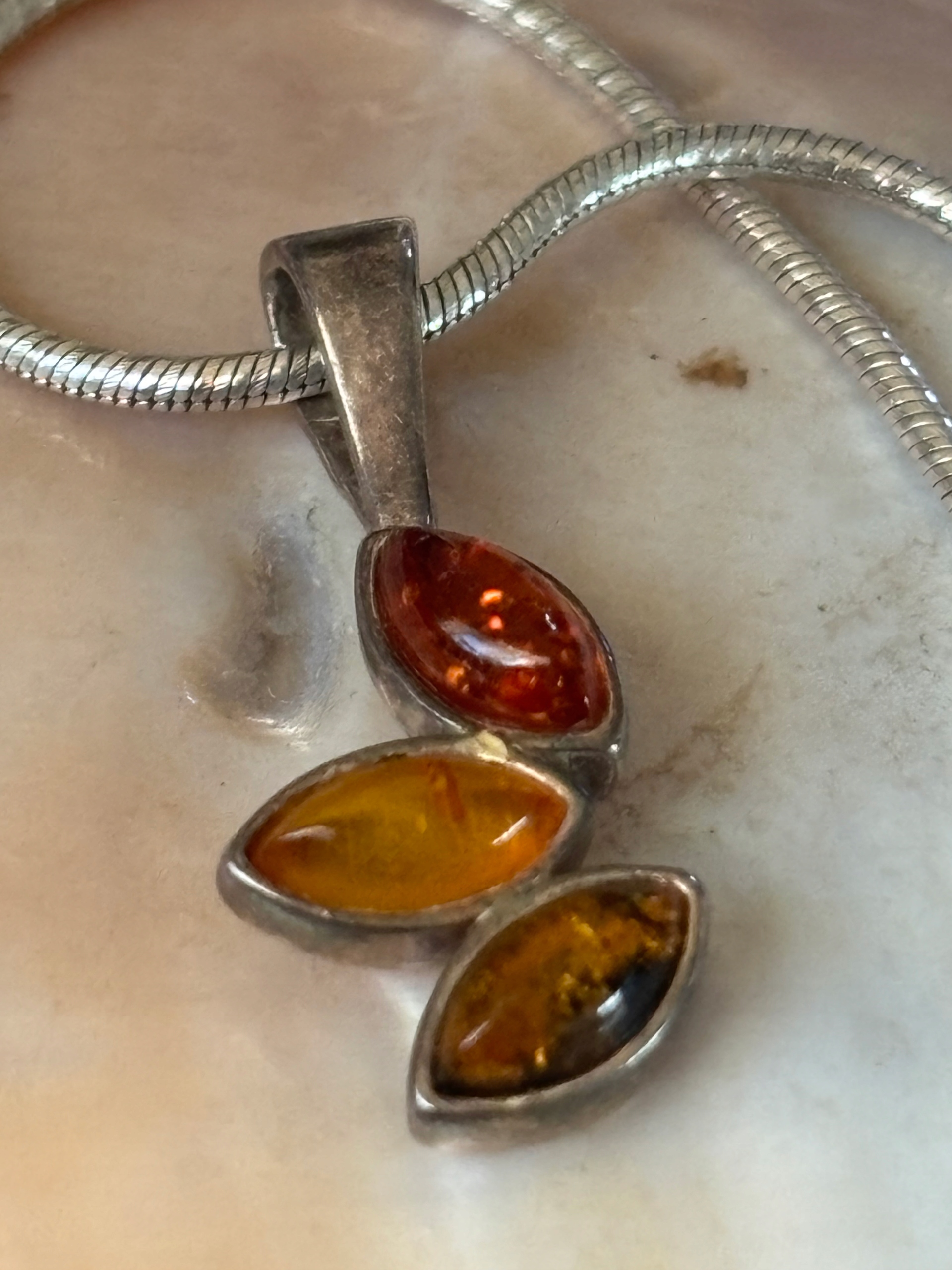Старовинний срібний кулон з натурального бурштину, частина комплекту