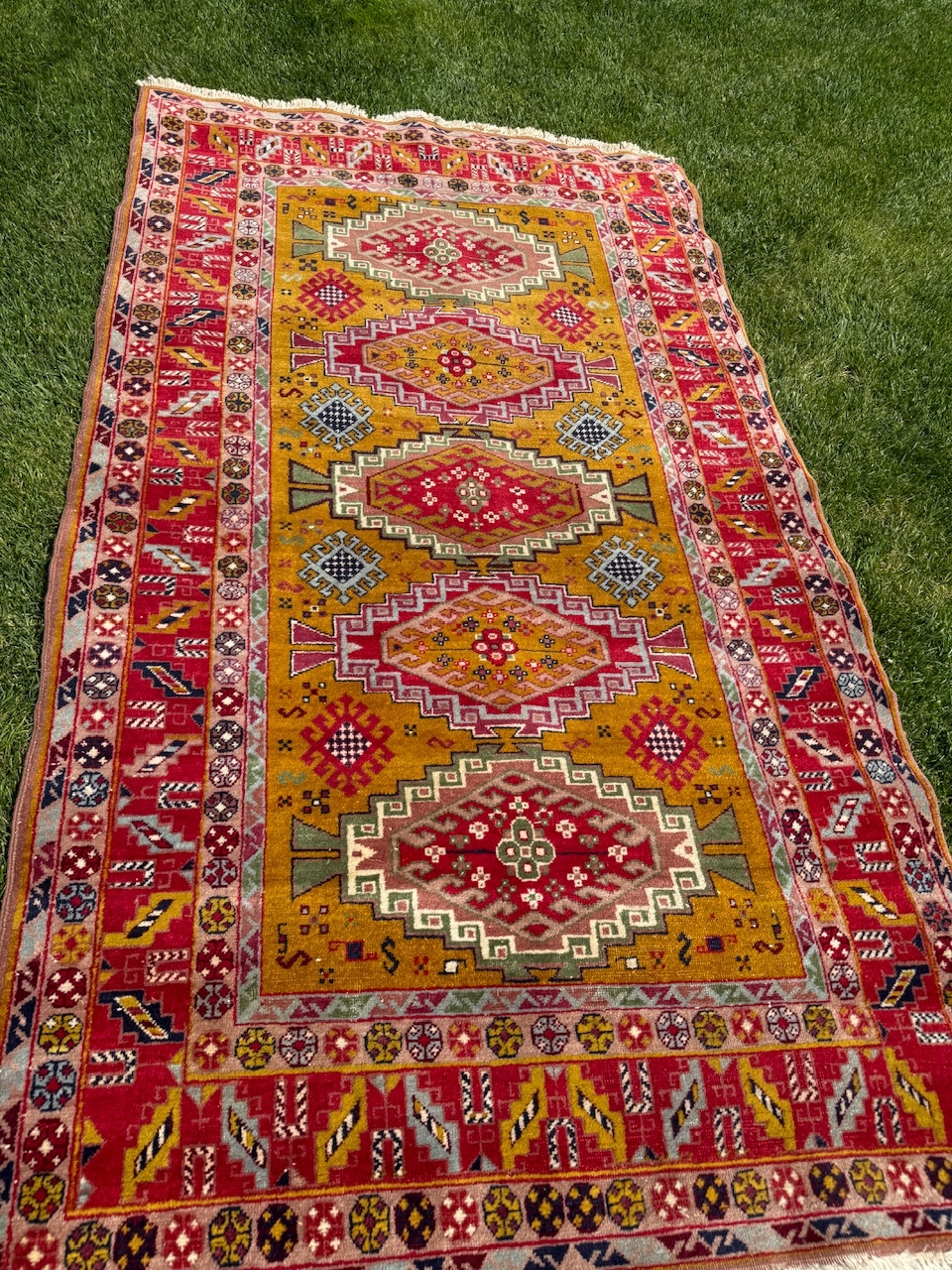 Тема: Кавказька килимка -заточена. Оригінальний східний турецький казак. У ньому є тег під сертифікат RUG + Paper за запитом. У галереї, перед знижкою, вона коштувала 2600 євро або близько 11 000 PLN. є унікальним через його схему. Це дуже високий килимок класу.