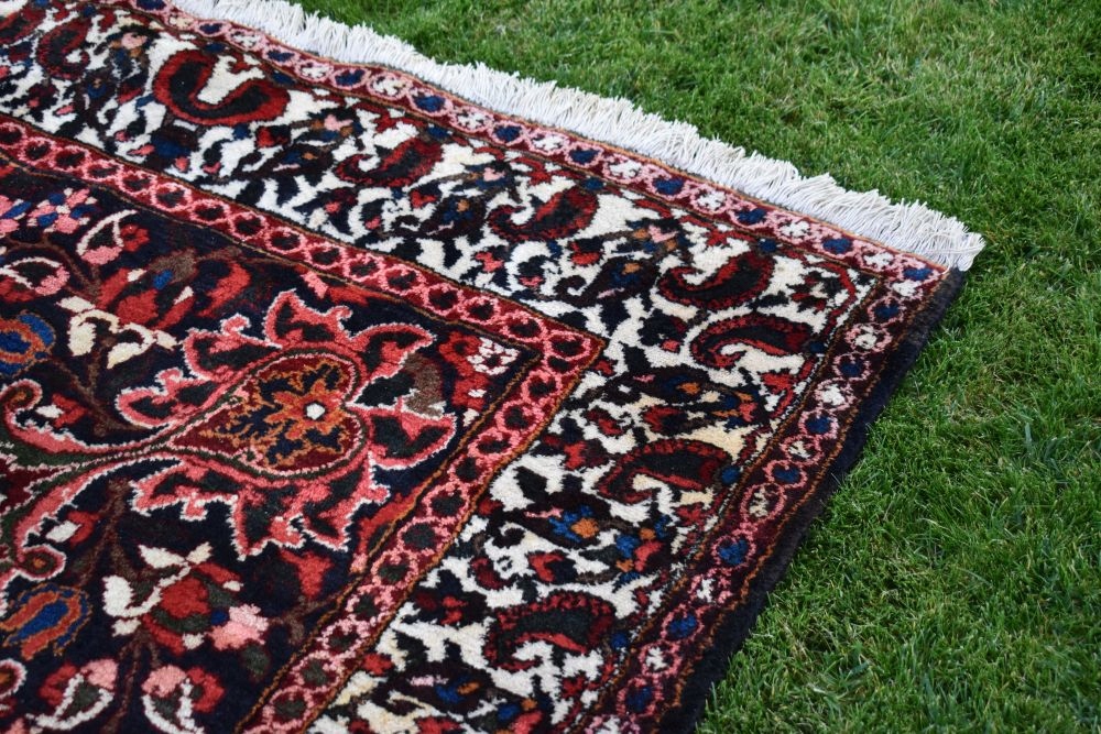 На наступному аукціоні я маю запропонувати вам старий, виготовлений з вовни найвищої якості, хитромудрого, ручного ткацтва, справжній перський BAHTIAR - IRAN. Дуже щільно тканий килим, міцний і стійкий, з виразними кольорами.