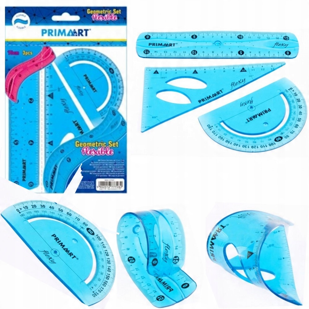 Гнучкий геометричний набір з колекції Prima Art, присвячений школі. Геометричний набір складається з лінійки 15 см, косинця та транспортира. Геометричні інструменти виготовлені з прозорого, гнучкого, міцного матеріалу. Фурнітуру можна згортати, скручувати і згинати без обмежень. Все упаковано в сумку з вішалкою. Необхідний набір для уроків математики.