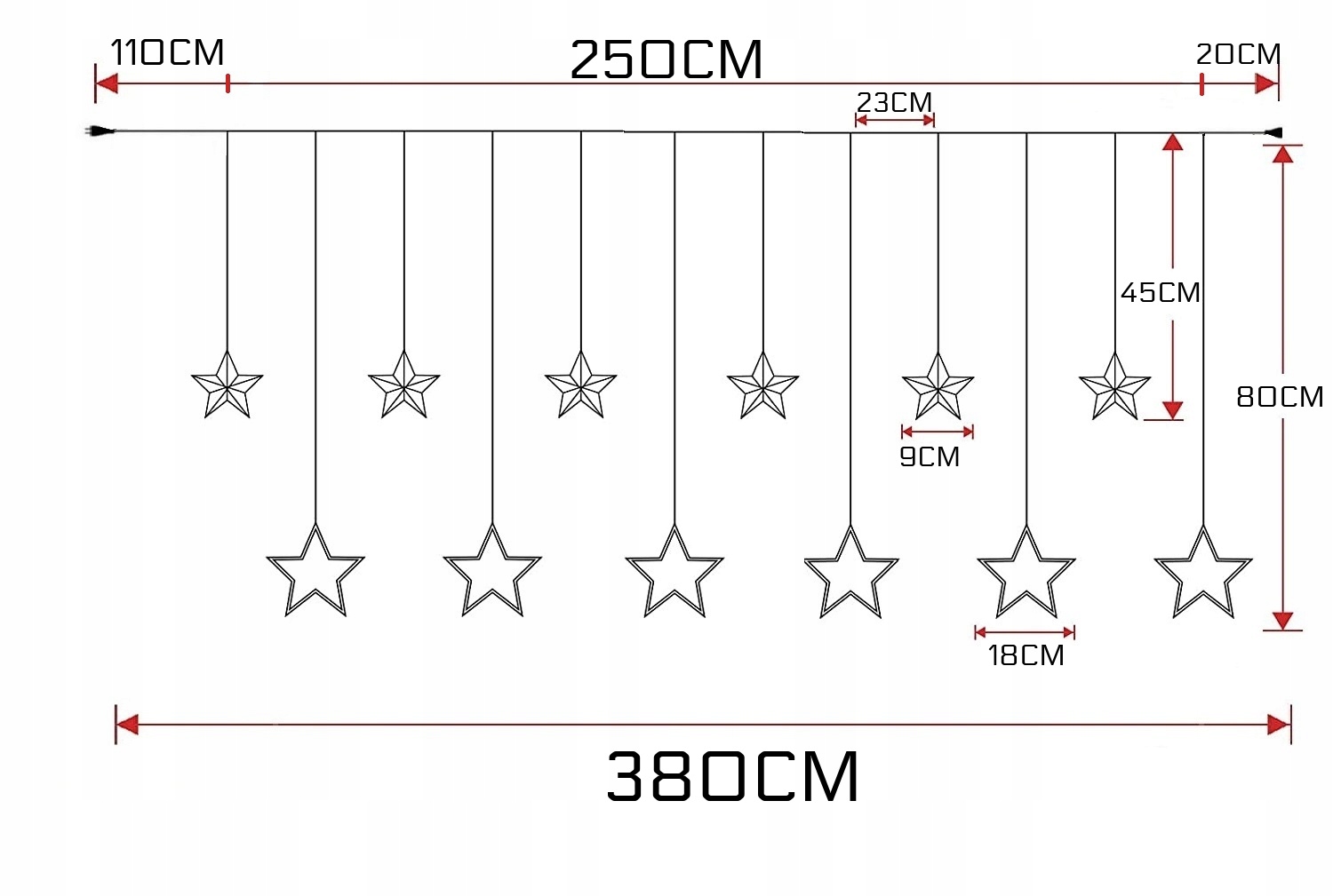 СВІТЛОВІ ПІДВИСНІ ЗІРКИ 126 СВІТОДІОДІВ ТЕПЛО-БІЛОГО КОЛЬОРУ