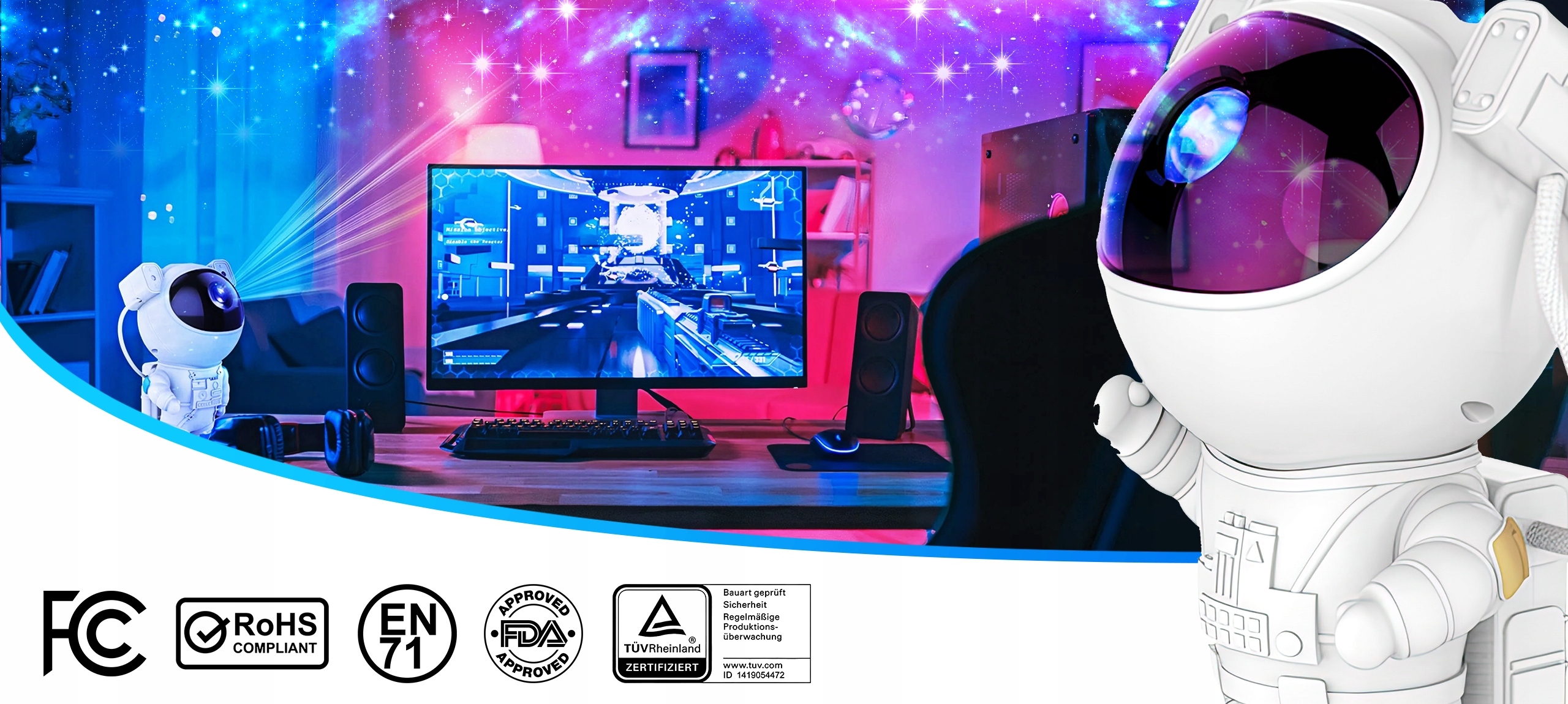 Наш нічний зоряний проектор має форму чарівного космонавта, голова якого магнітно з’єднана з тілом. Завдяки цьому ви можете легко регулювати кут проекції, адаптуючи відображувану туманність до ваших потреб.