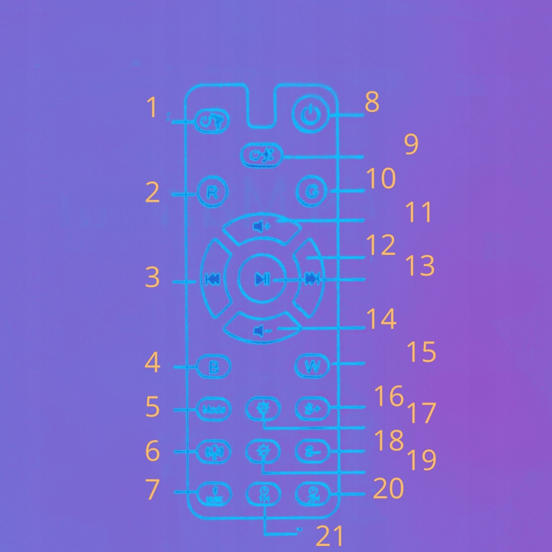 - Перемикач туманності: коротко натисніть кнопку «Туманність», щоб змінити колір туманності, кожне наступне натискання перемикатиме колір тощо, тривале натискання вимикає функцію туманності, а потім коротке натискання — перезапустіть його.