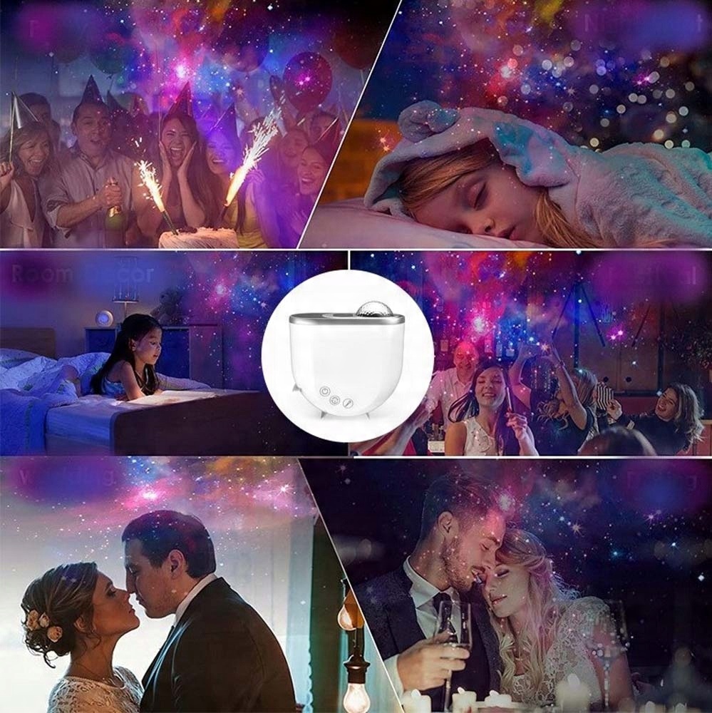 Вбудований динамік Bluetooth дає змогу синхронізуватися зі смартфоном, щоб наповнити кімнату улюбленим списком відтворення. Увімкніть режим «голосове управління» і відчуйте ритм, коли проектор змінює кольори в такт вашої музики. Крім того, 6 типів білого шуму для розваги та відпочинку. 🎧🎶