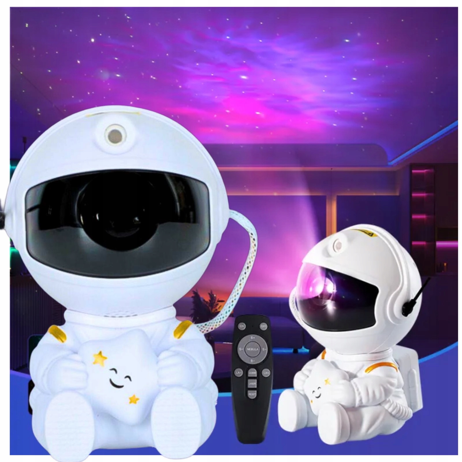 Незвичайний світлодіодний зірковий проектор у формі космонавта, який сидить із зіркою в руках. Вбудований лазер дозволяє проектувати зірки або галактики у 8 режимах. Поворотна головка (360 градусів) дозволяє проектувати в широкій площині і на великій відстані. Можливість регулювання яскравості світлодіодів, швидкості обертання та часу роботи. Зручний ІЧ-пульт дистанційного керування дозволяє легко розташувати проектор на відстані. Привабливий зовнішній вигляд і безліч варіантів налаштування роблять його ідеальним подарунком для дитини.