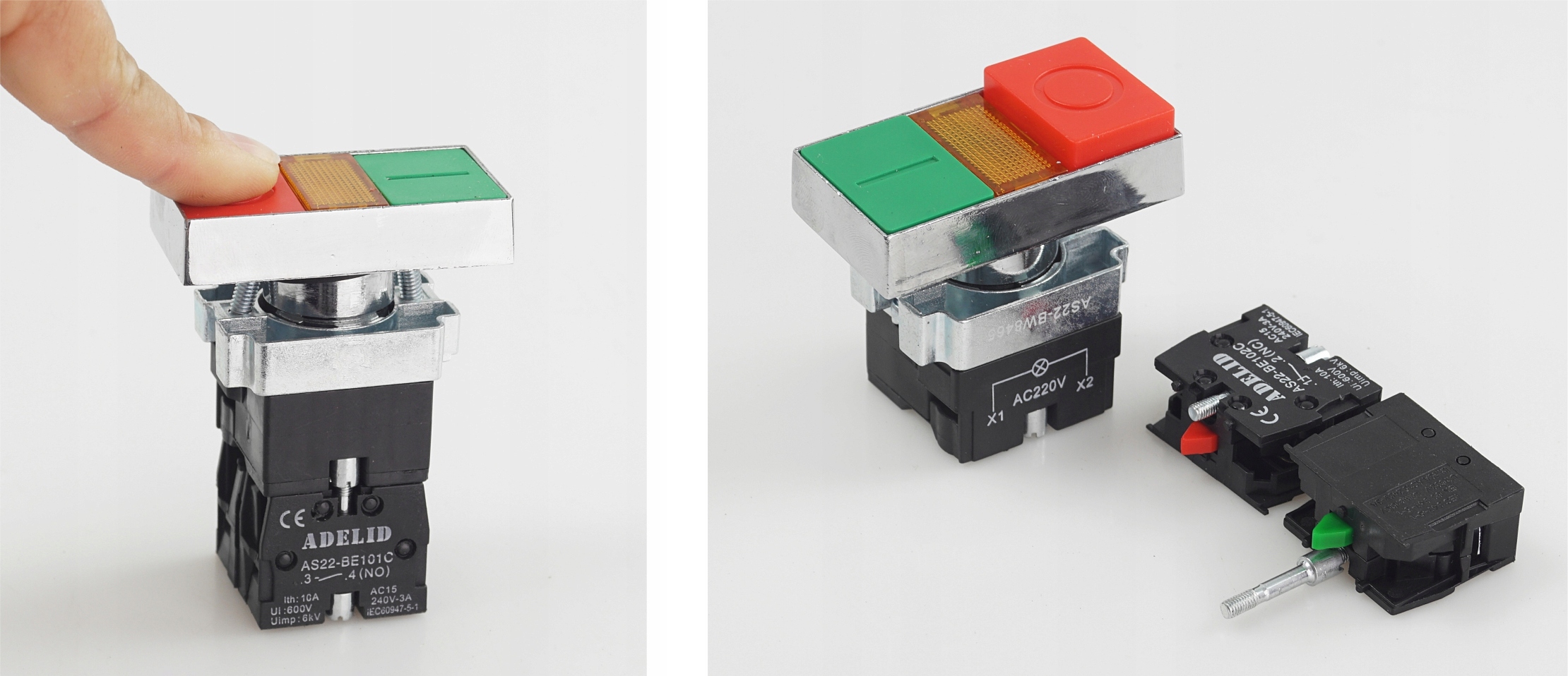 Кнопка керування, для встановлення в корпуси та блоки керування, відповідних розмірів.