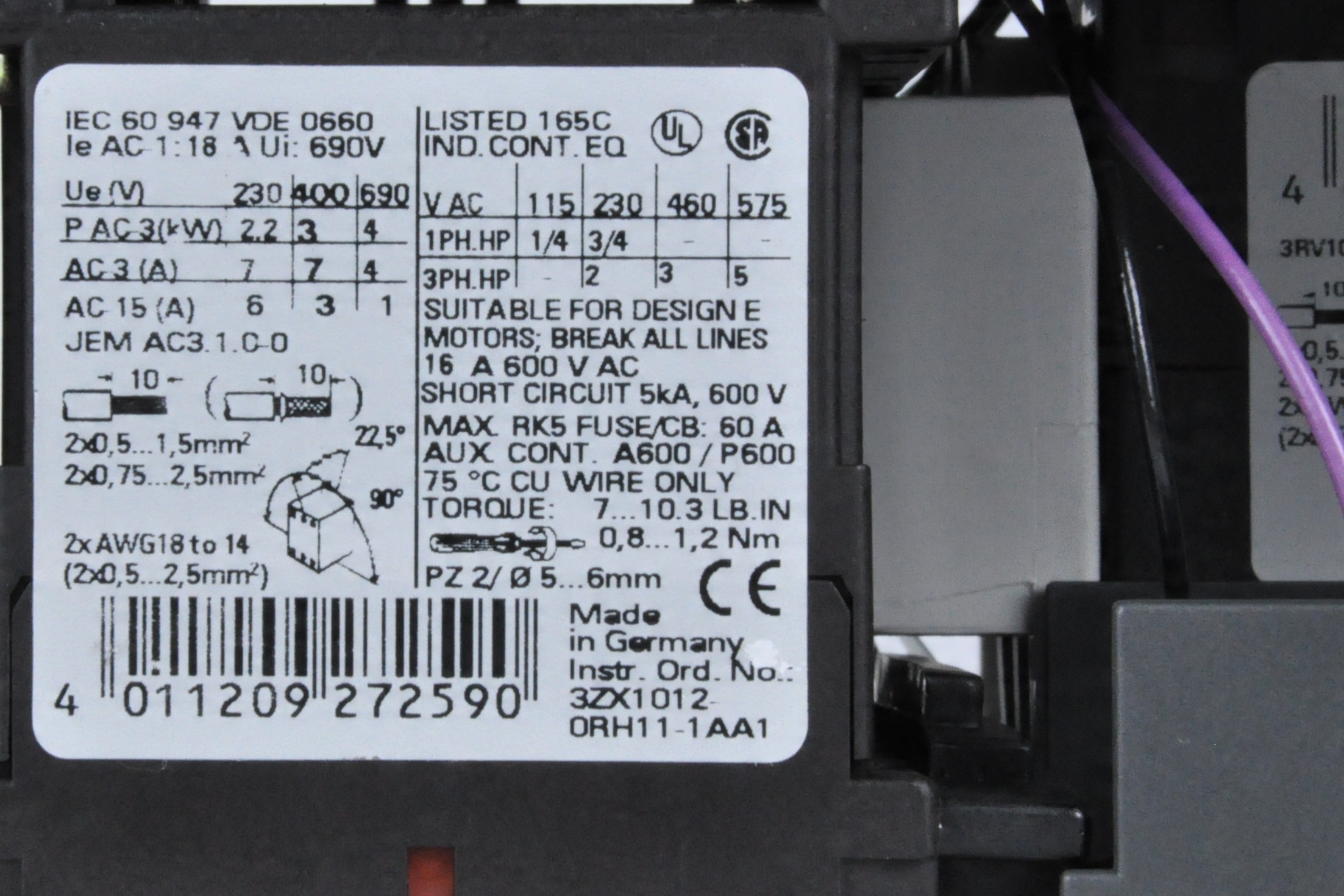 - назва: пускач двигуна з вбудованим запобіжним вимикачем та контакторами, що дозволяють змінювати напрямок обертання двигуна (ліворуч/праворуч), керування в системі ET 200 S,
