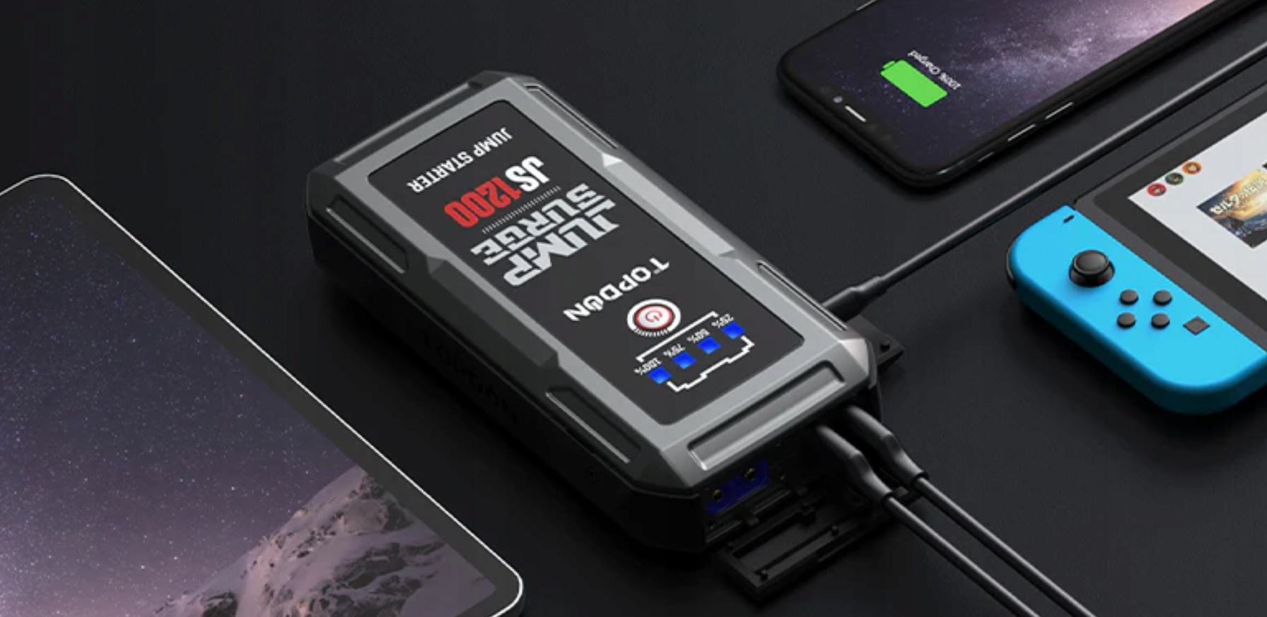 Jumpstarter 1200 служить банком живлення з портом USB, швидкою зарядкою 3.0, підтримуючи 5 В/3A, 9V/2A та 12 В/1.5A. ,