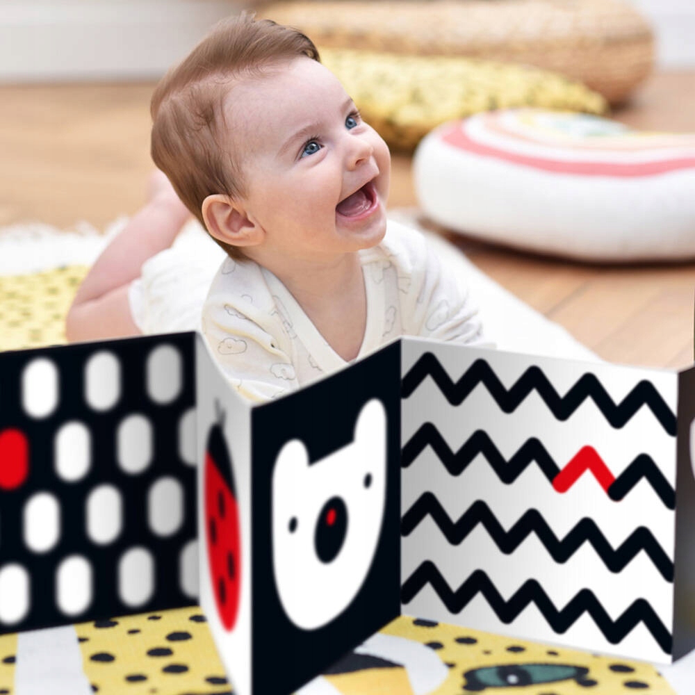Чи знаєте ви, що після народження ваша дитина бачить лише чіткі, дуже контрастні візерунки? Зір дитини туманний. Потім воно поступово набуває здатності розрізняти кольори і деталі. Тому малюки люблять контрасти і завдяки їм вчаться фокусувати погляд. Більше того, він чудово стимулює розвиток мозку! Покладіть книгу перед дитиною, яка лежить на животику - це чудова мотивація підняти її голову!