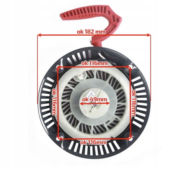 Відстань між отворами (виміряно прямокутно) – 116 мм. БЕНЗИНОВІ КОСАРКИ:
