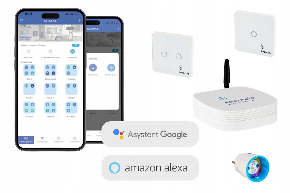 Розумний дім STARTER KIT дозволяє вам керувати понад 232 пристроями за допомогою включеного шлюзу, який можна підключити до програми Keemple 2.0, доступної як для Android, так і для iOS. У набір входить датчик відкриття, який дозволяє отримувати інформацію про відкриті двері або вікна в кімнаті, датчик руху, який повідомляє про виявлення рухомого об'єкта, і розумна розетка, яка дозволяє дистанційно вмикати або вимикати пристрій. та контролювати споживання електроенергії. Набір можна вільно розширювати для створення повних рішень «Розумний дім».