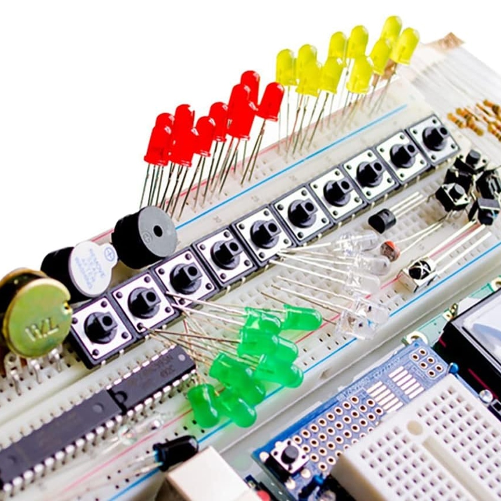 ➡️ Стартовий набір UNO R3 містить широкий спектр електронних компонентів, таких як резистори, конденсатори, світлодіоди, кнопки, потенціометри та датчики, які можна використовувати в різних проектах. Ви можете створювати електронні схеми, керувати освітленням, створювати датчики, зчитувати інформацію з різних датчиків тощо.