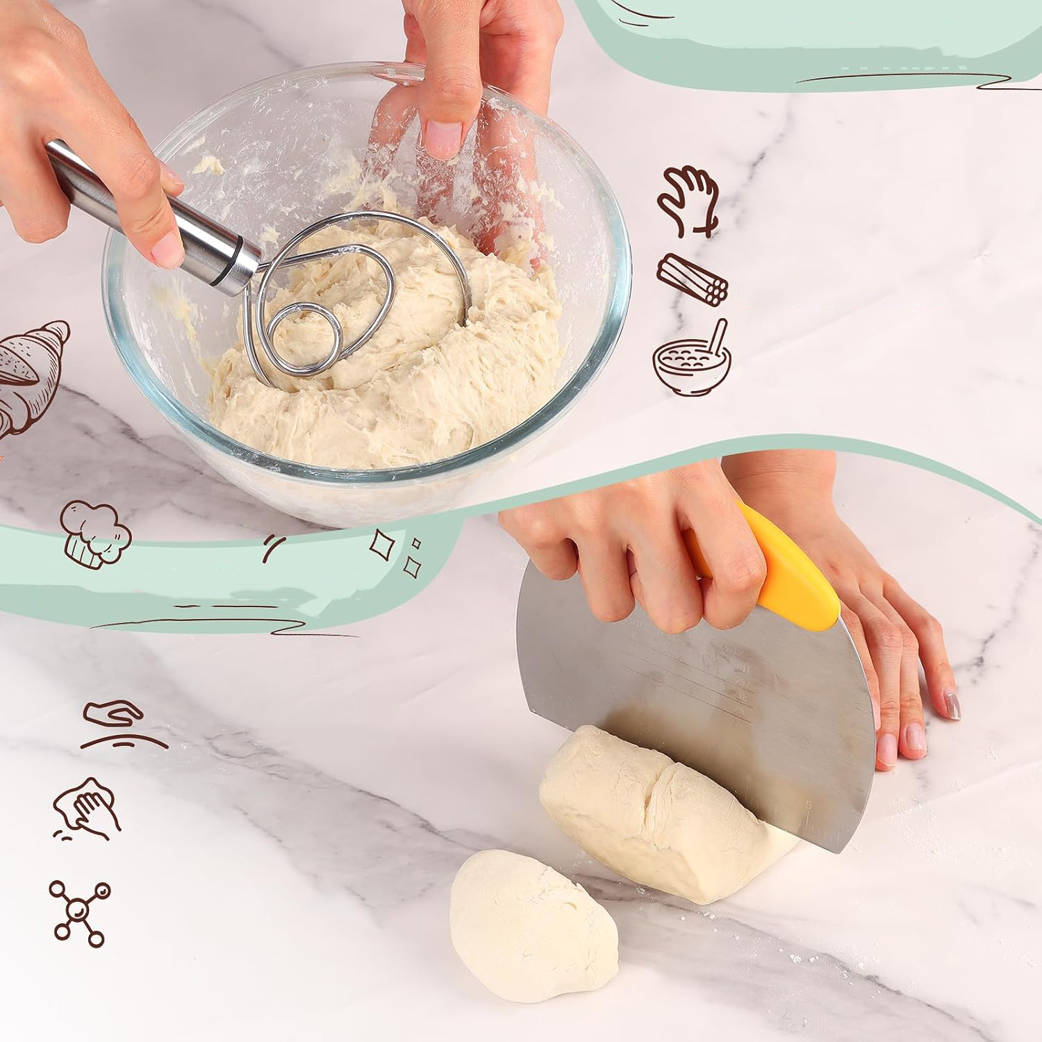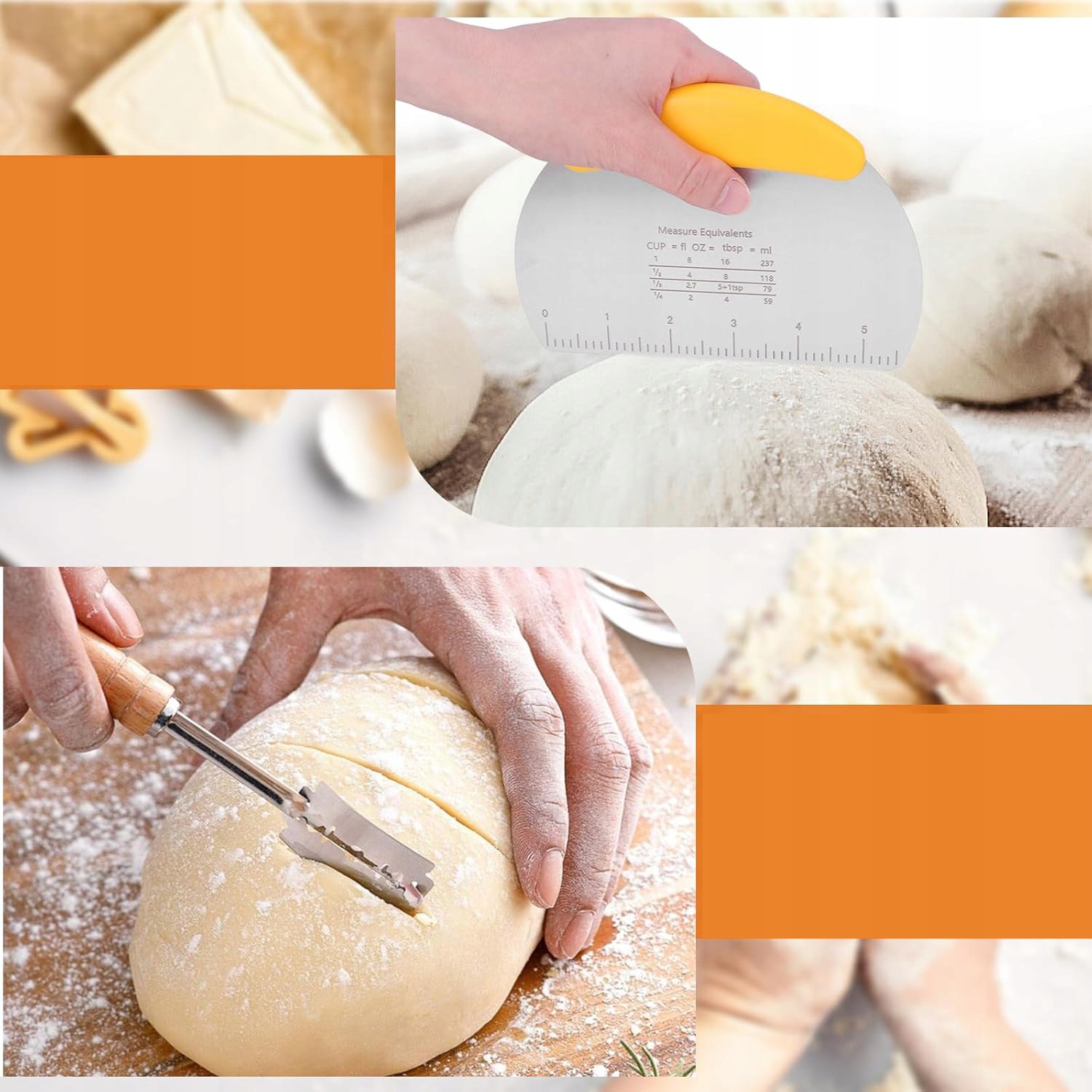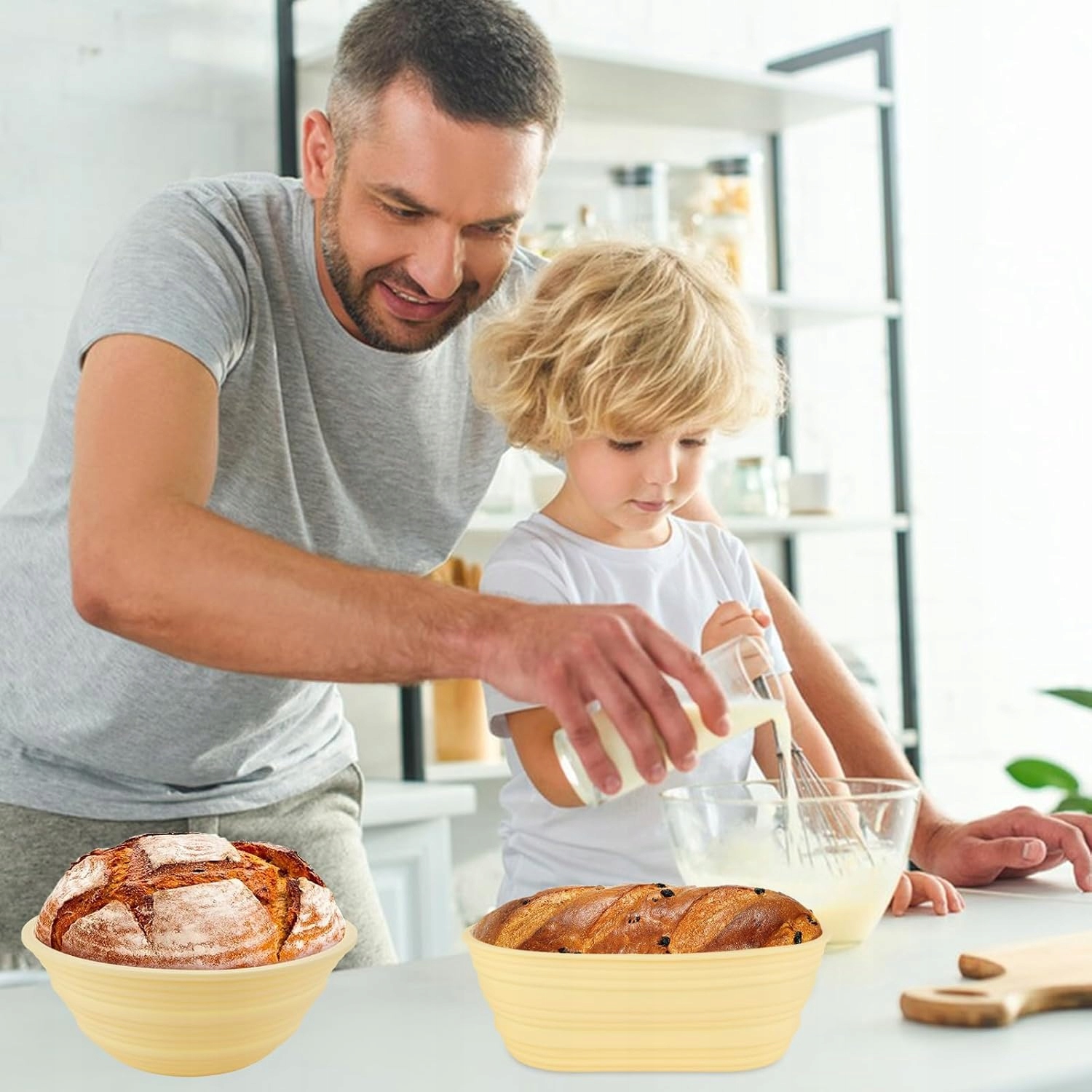 🍞 Повний набір для випікання: наш набір для випікання включає круглий (23,5 см) і овальний (26 см) кошик для бродіння, кожен з яких містить хліб вагою приблизно 1 або 2 фунти. 1 віночок, 1 скребок для тіста з 4 додатковими лезами. Ідеально підходить для любителів випічки будь-якого рівня.