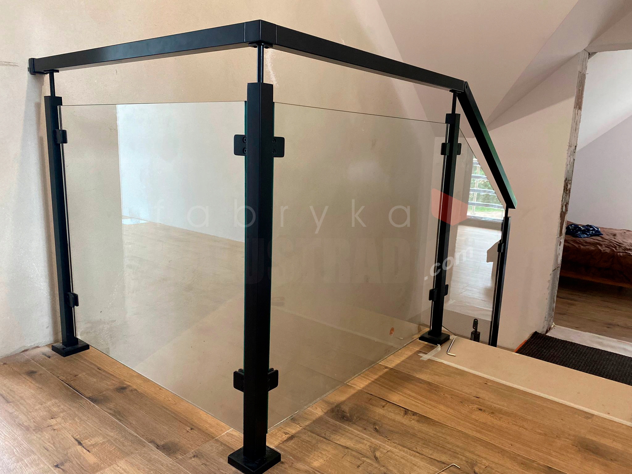 Стійка системи START з фіксованим штифтом і пластинами для кріплення профілю або дерев'яного поручня з затискачами для кріплення скла