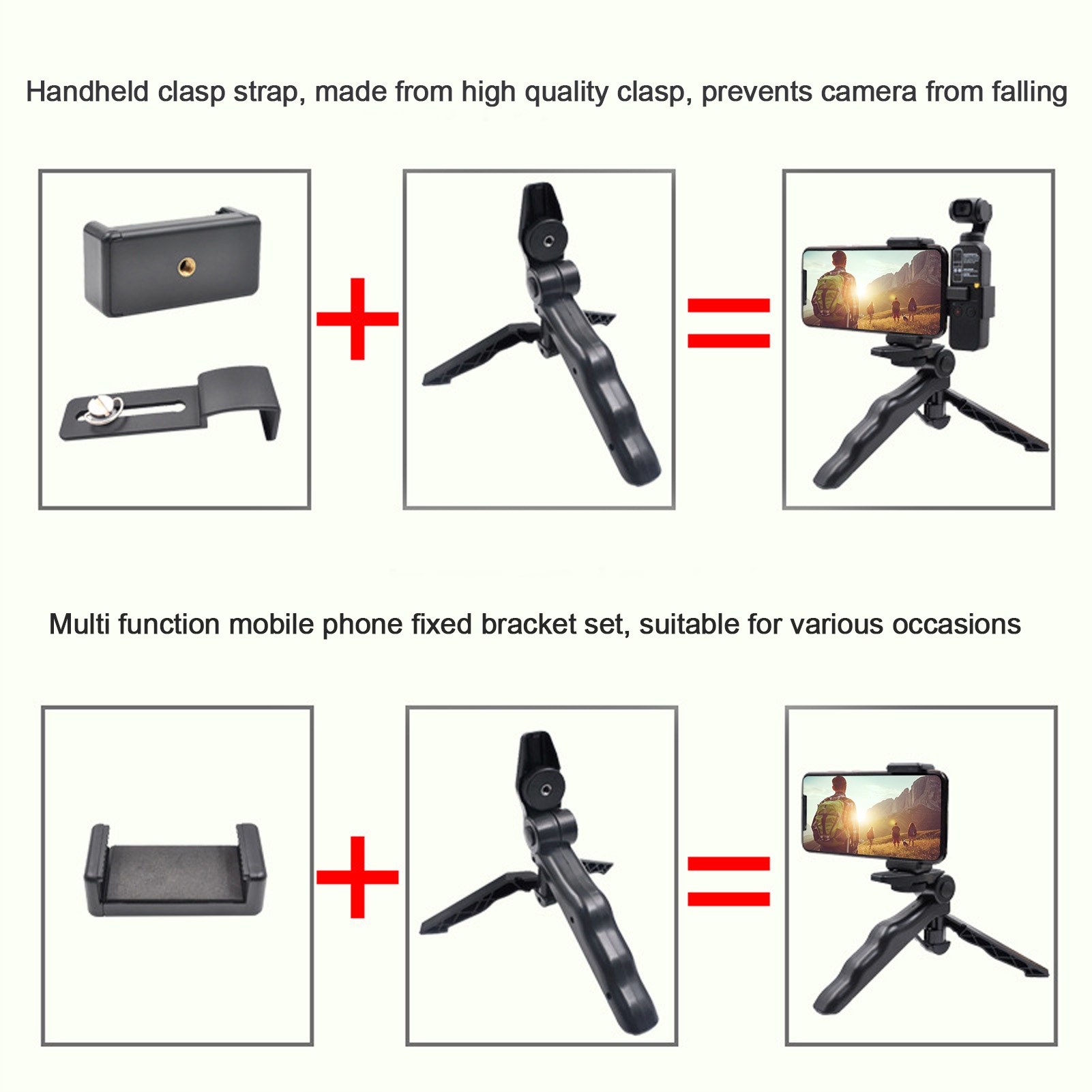 4. Набір фіксованих кронштейнів для мобільного телефону: розмір затискача для мобільного телефону становить 60-98 мм і підходить для різних сцен, таких як прямі трансляції, туризм, інтерв’ю тощо. Легкий дизайн і портативність означають, що ви можете носити його з собою в кишені або портфель .